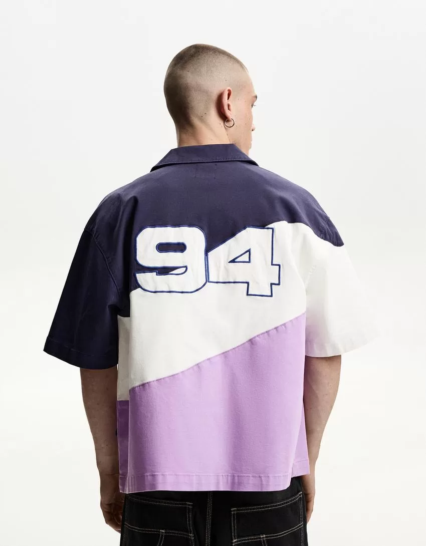 Camisa boxy fit de manga corta con estampado Nascar Violet