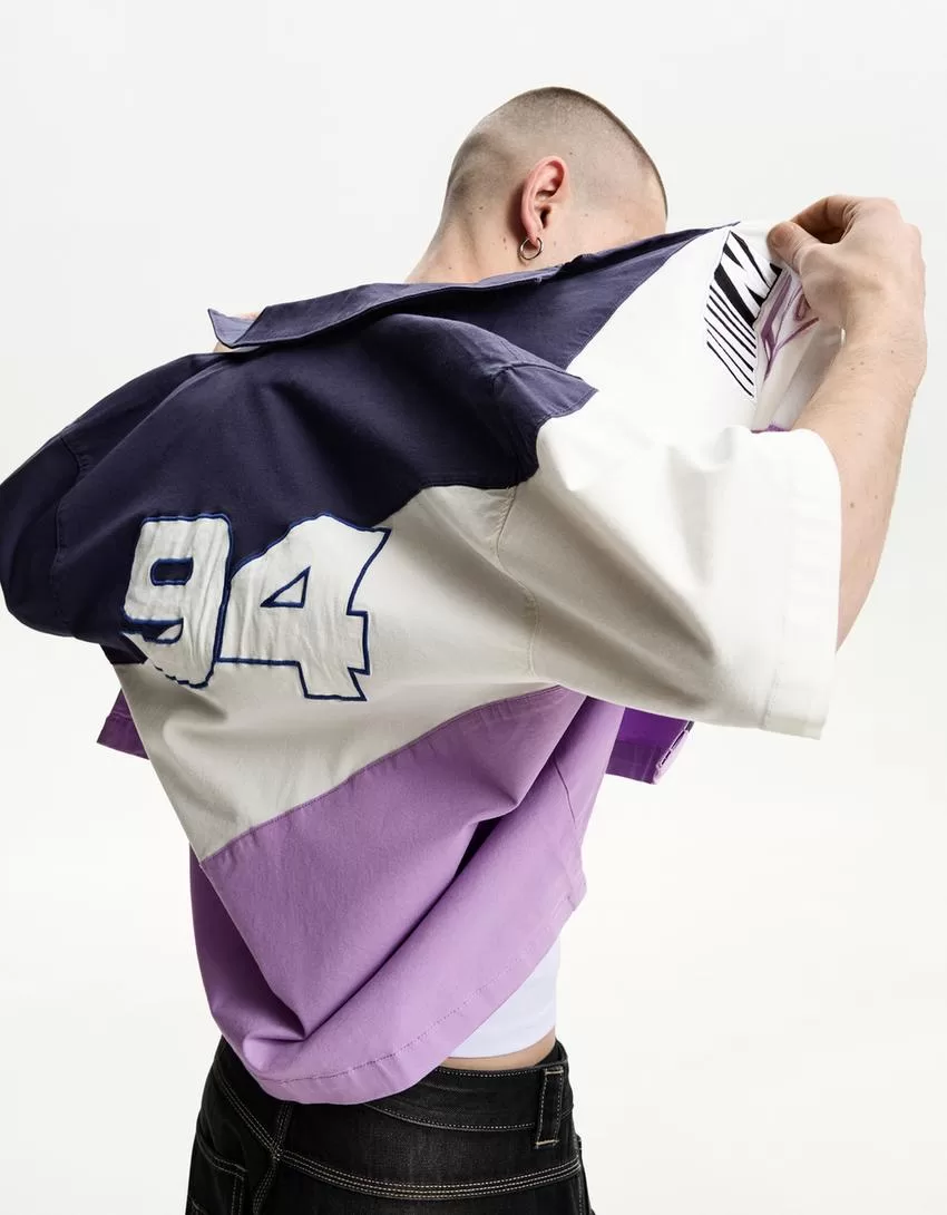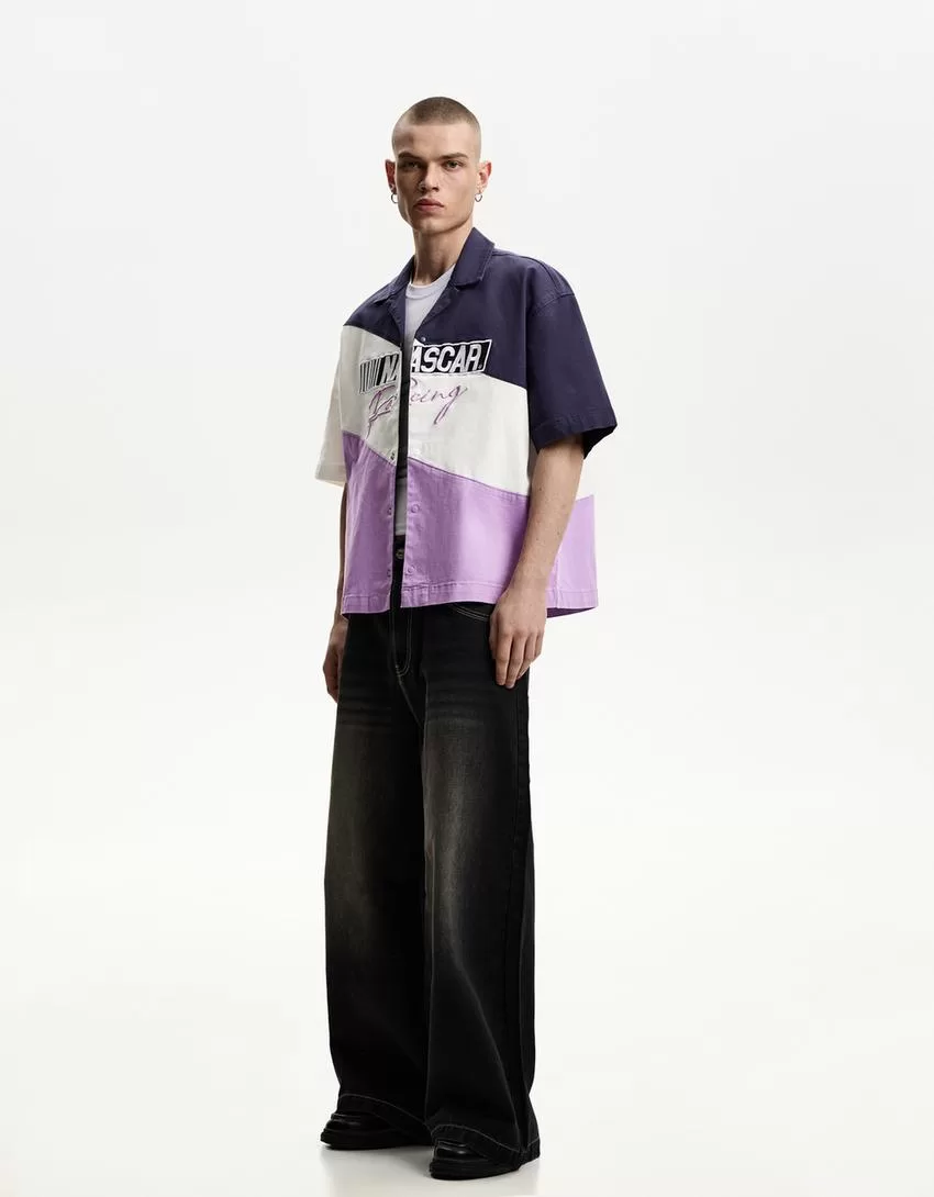 Camisa boxy fit de manga corta con estampado Nascar Violet