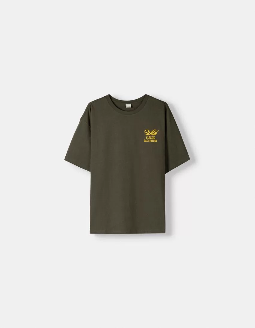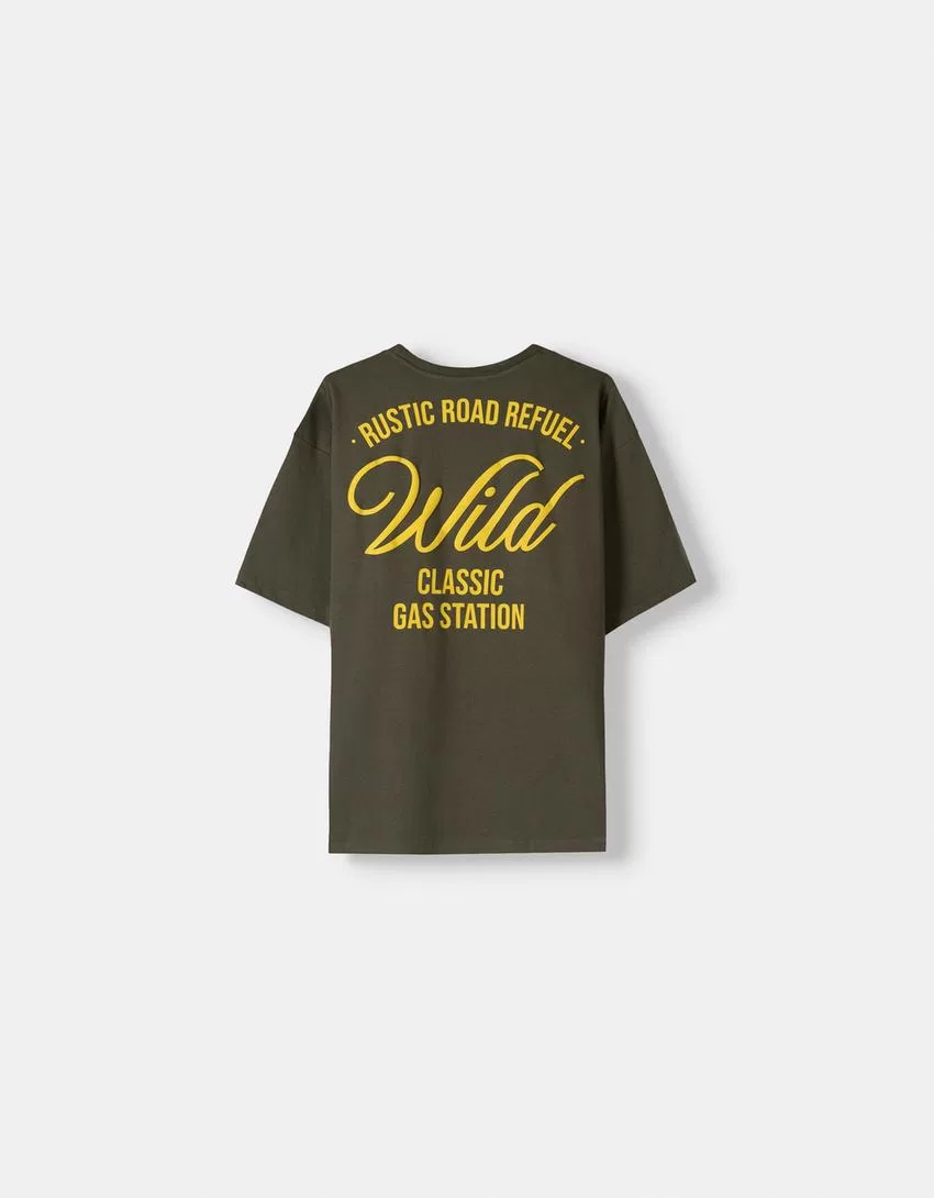 Camiseta bordada de manga corta de ajuste relajado Brown