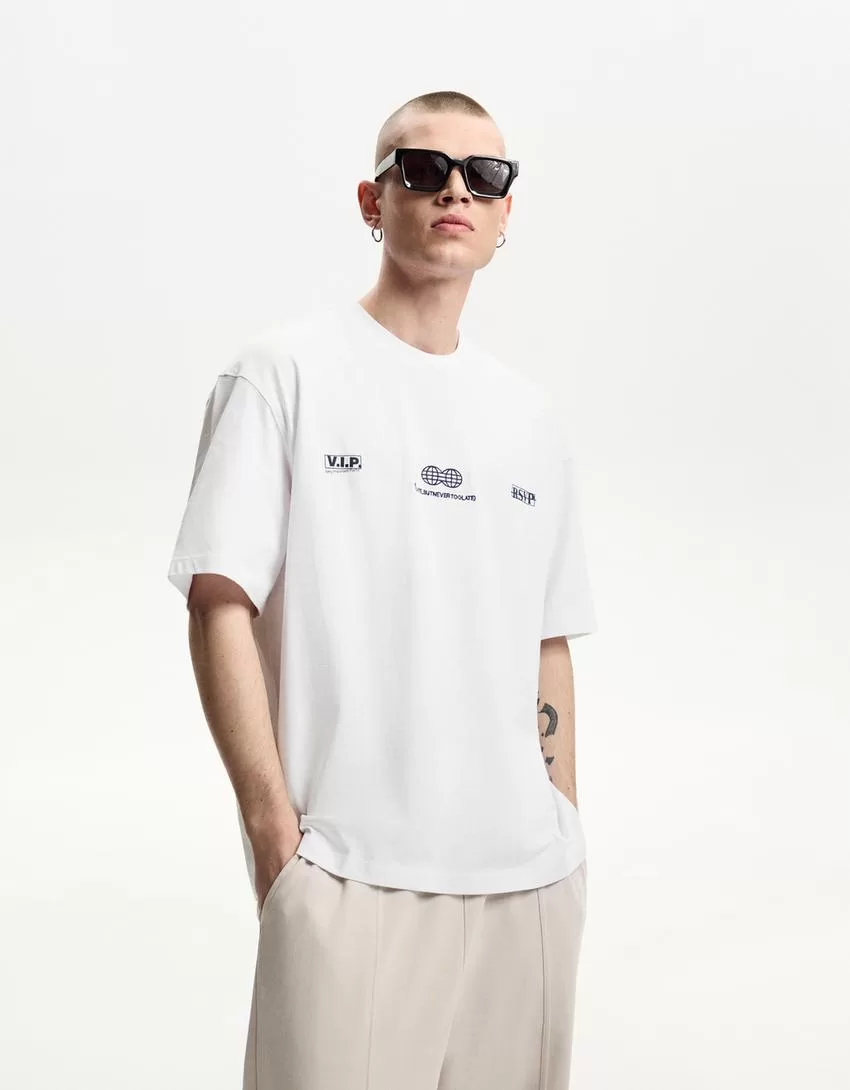 Camiseta manga corta con bordado White
