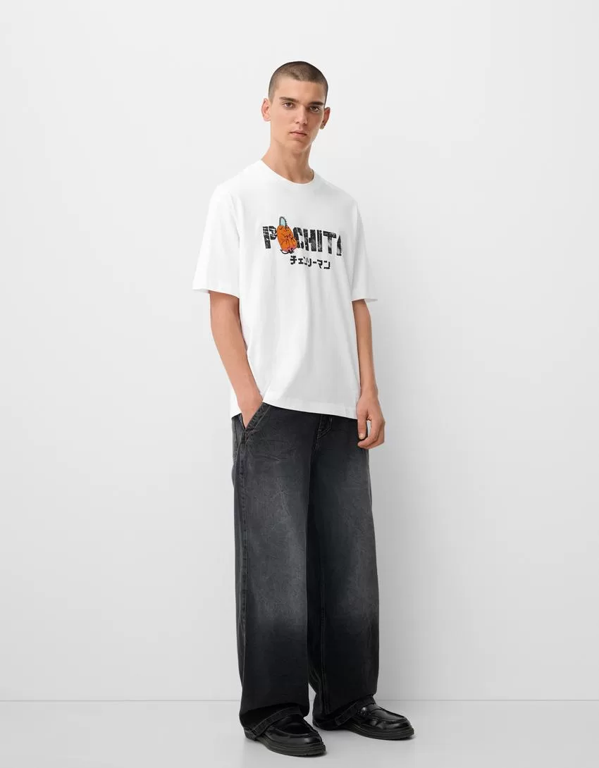 Camiseta manga corta estampado Chainsaw Man White