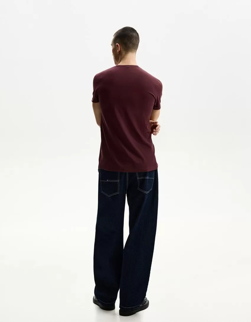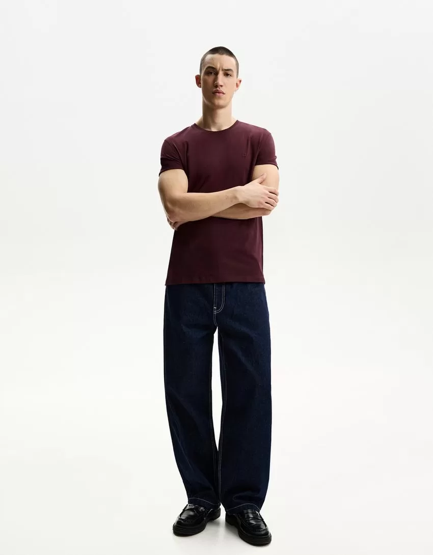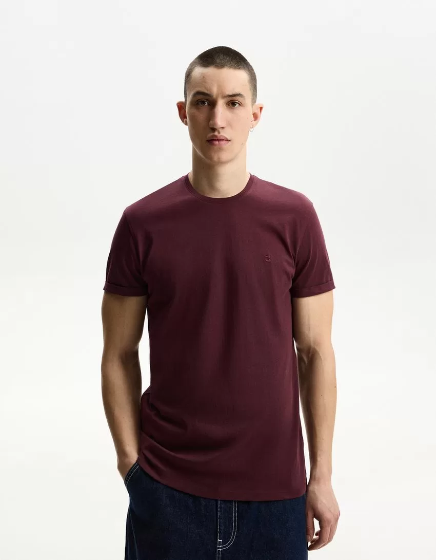 Camiseta roll-up manga corta bordada Maroon