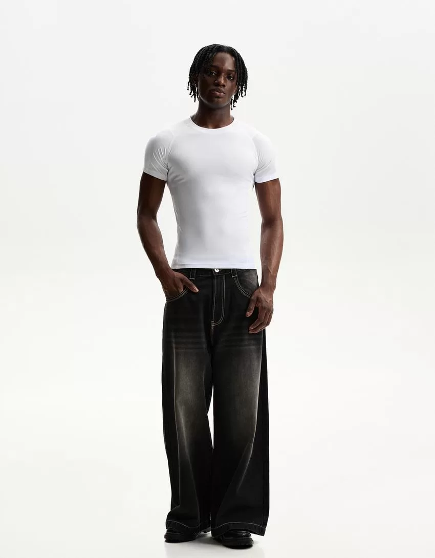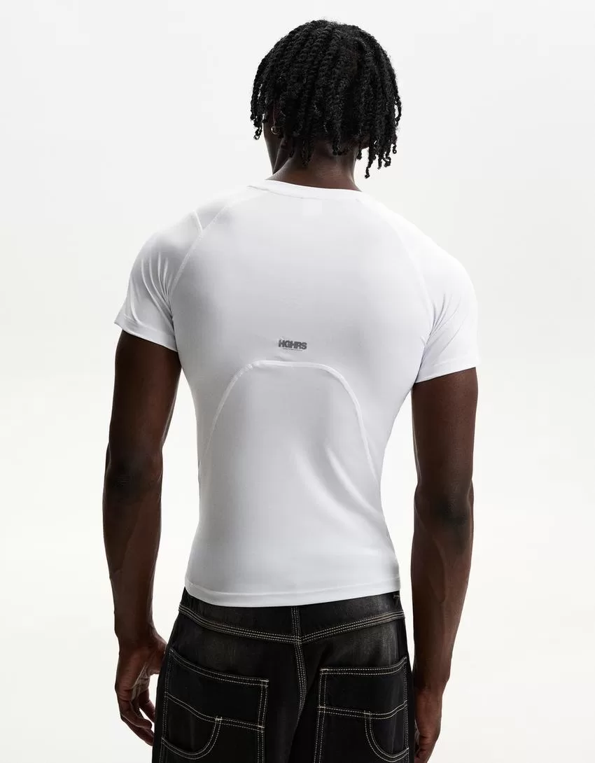 Camiseta slim fit de manga corta con costuras White