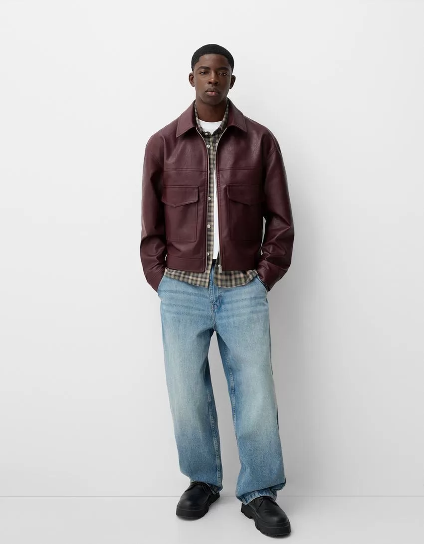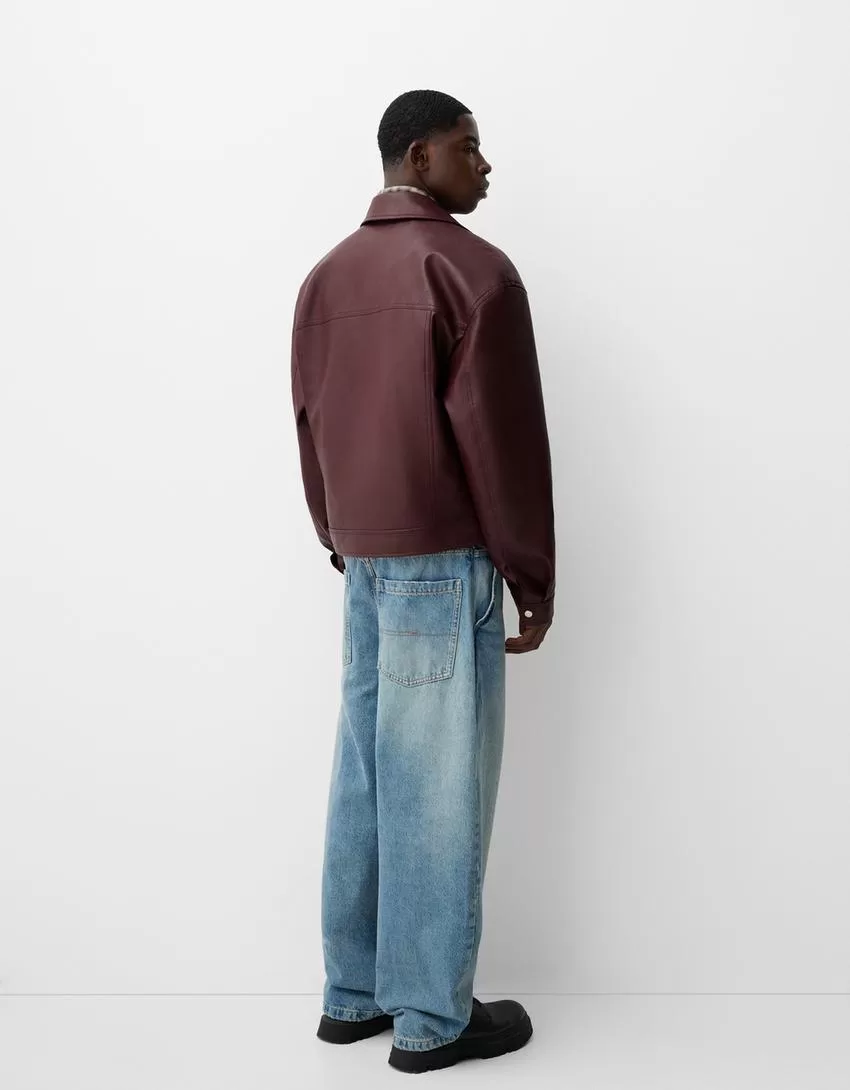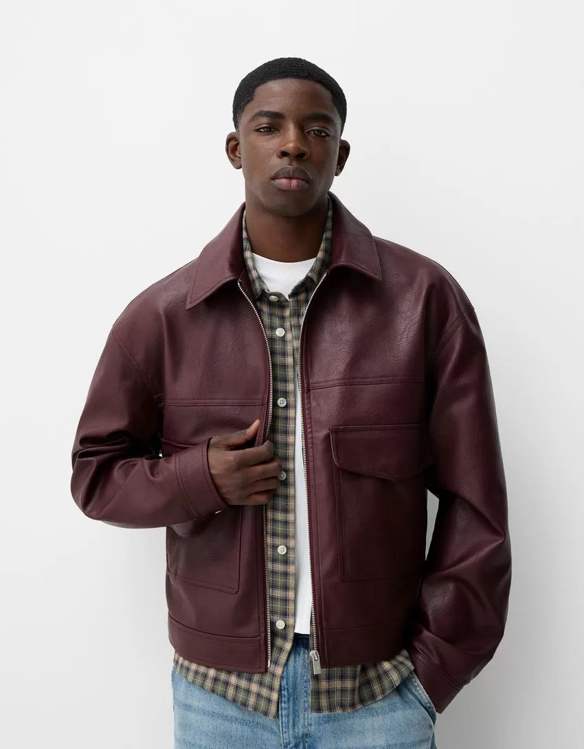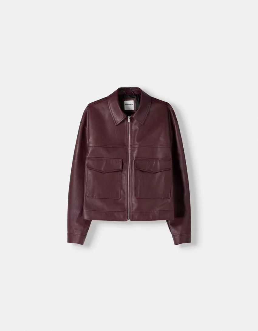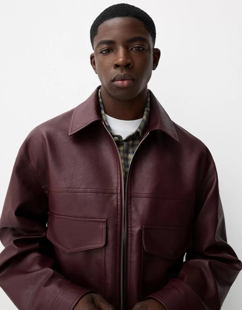 Chaqueta efecto piel Burgundy