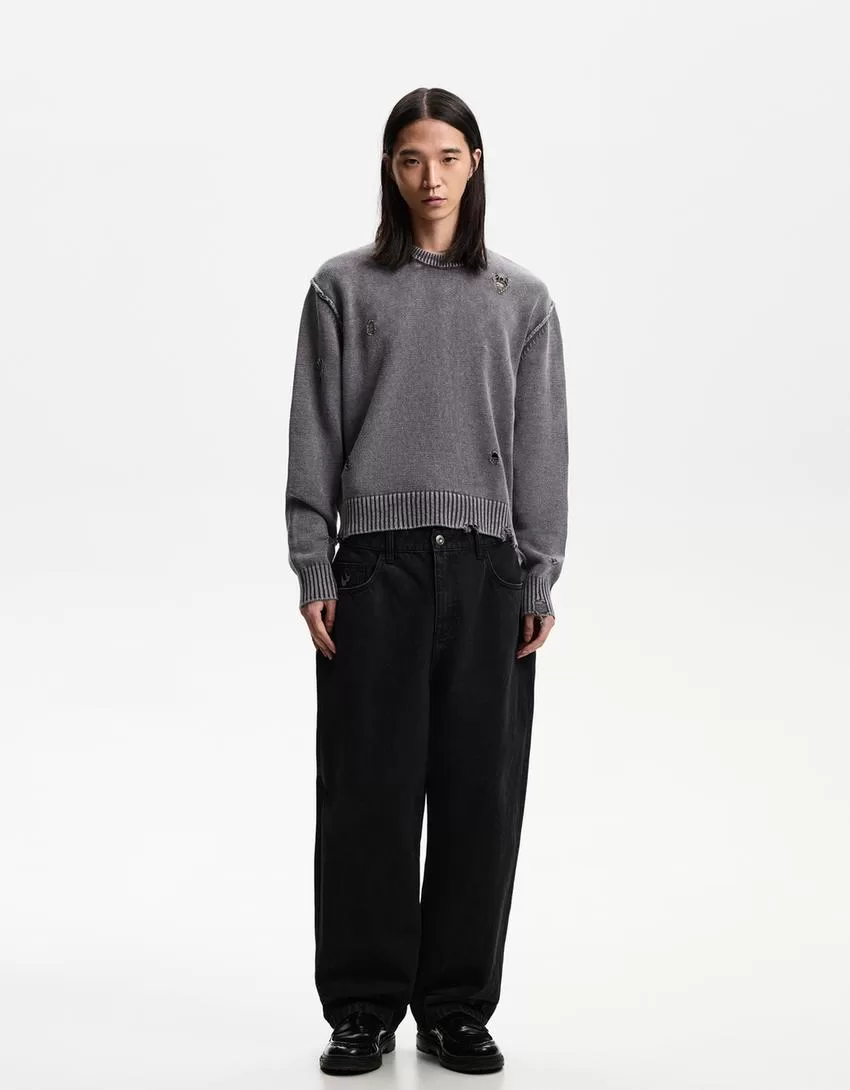 Jersey rotos desteñidos Black