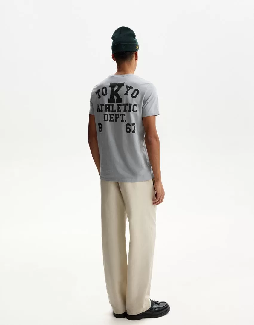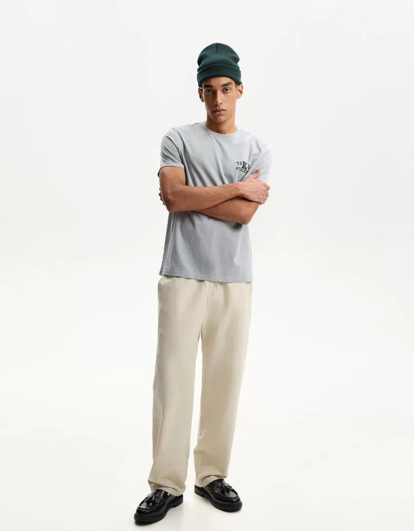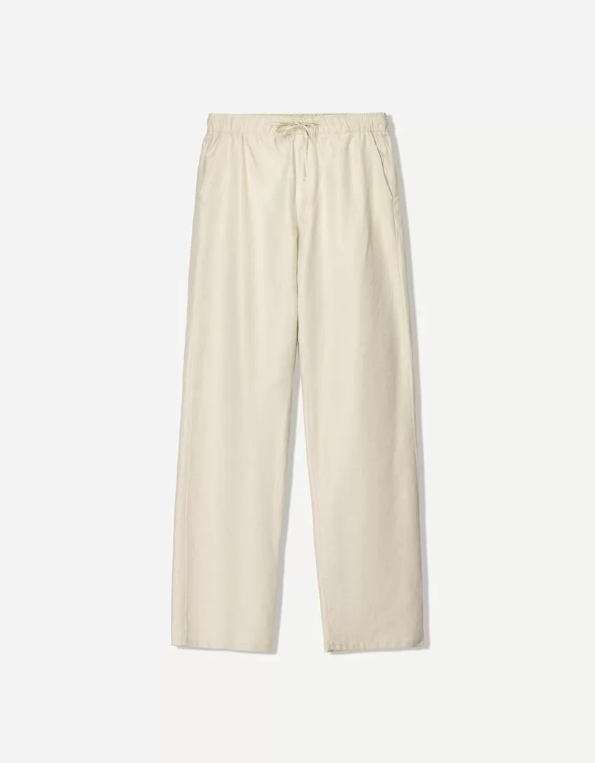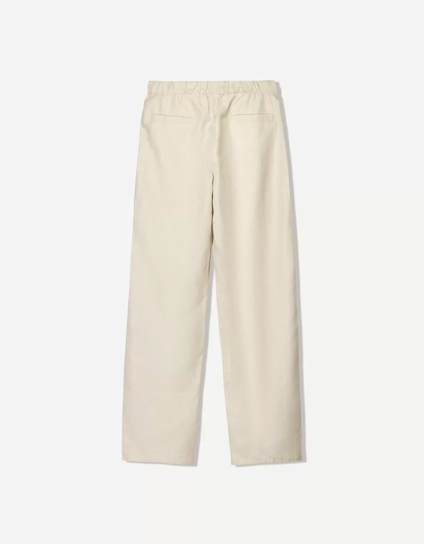 Pantalón rústico ancho de mezcla de lino Stone