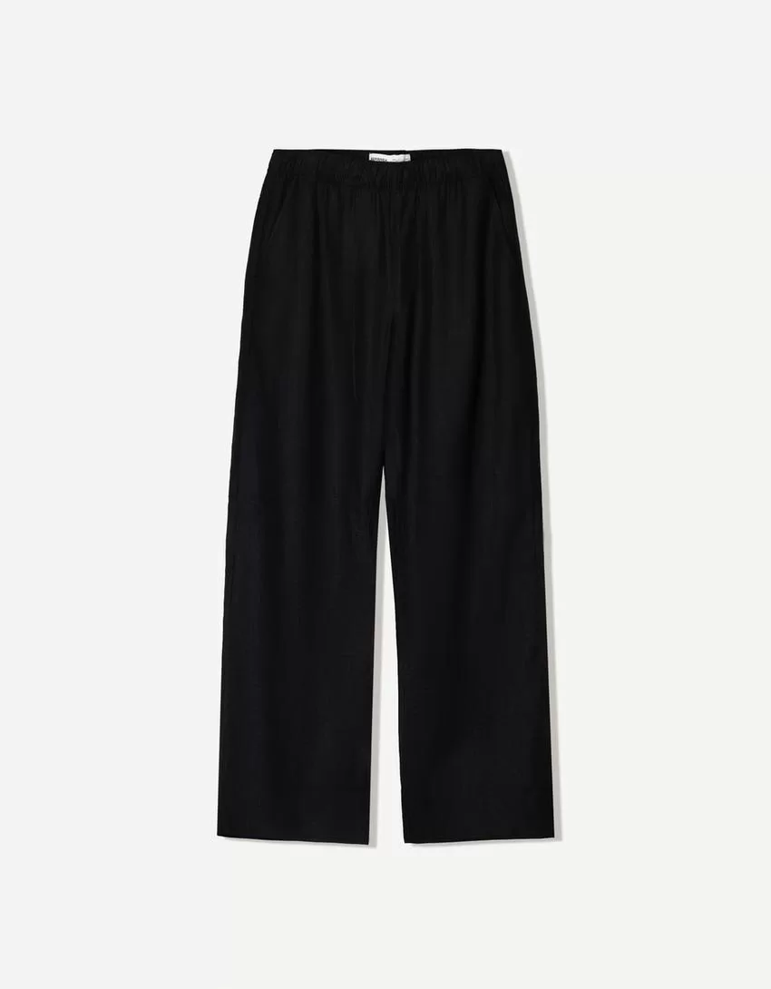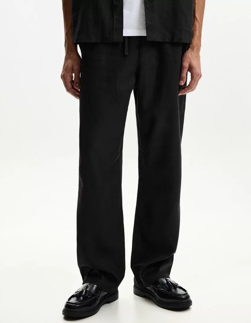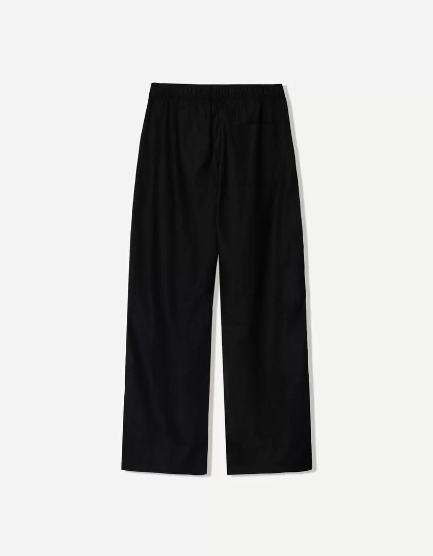 Pantalones deportivos anchos en mezcla de lino Black