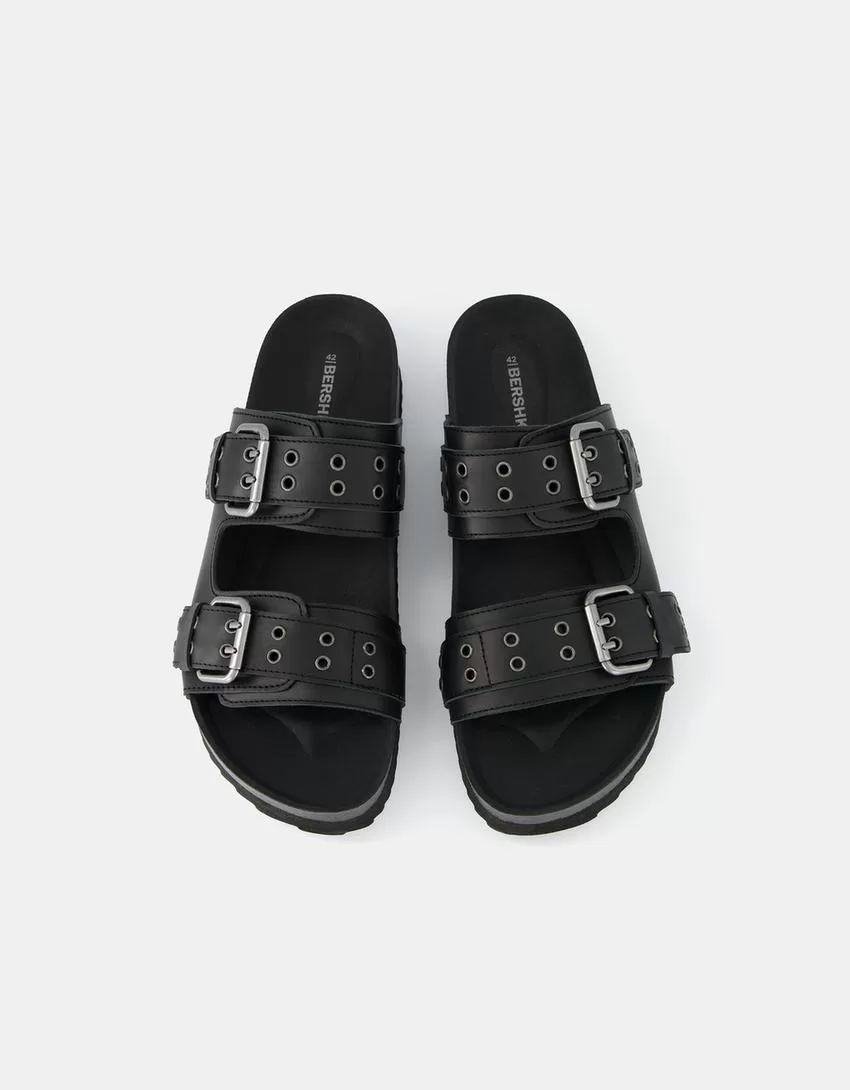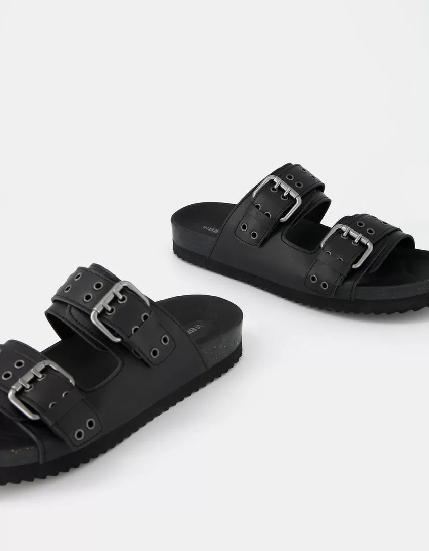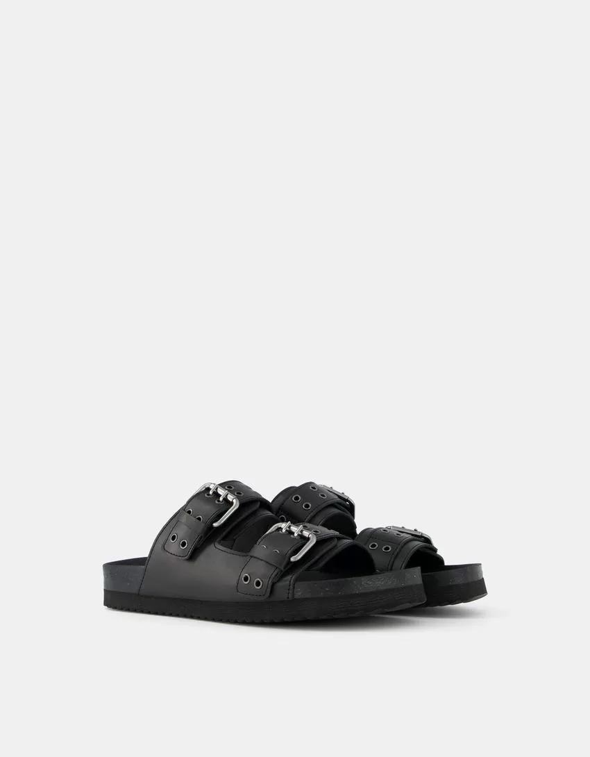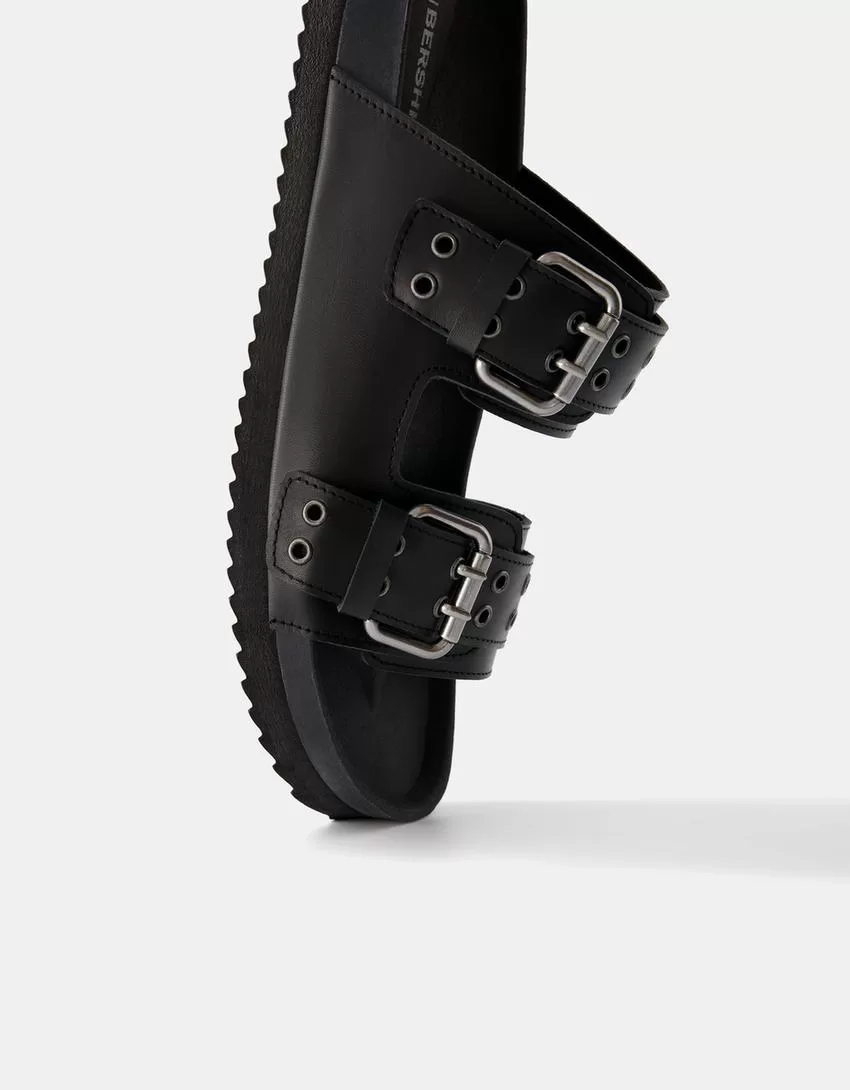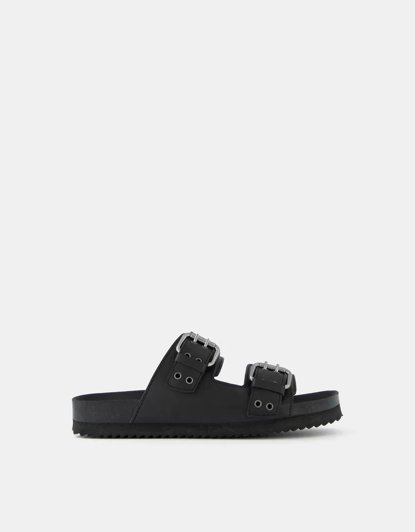 Sandalias planas tipo chancla PIEL con hebillas BLACK