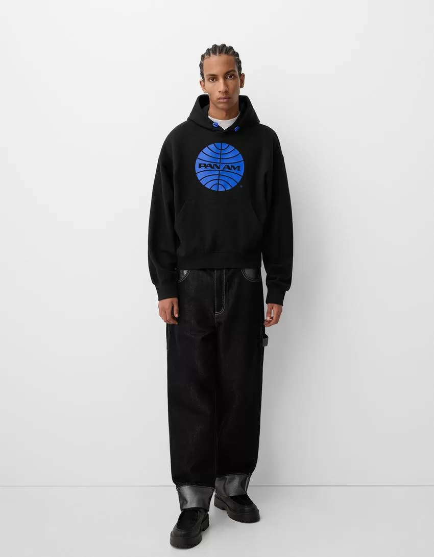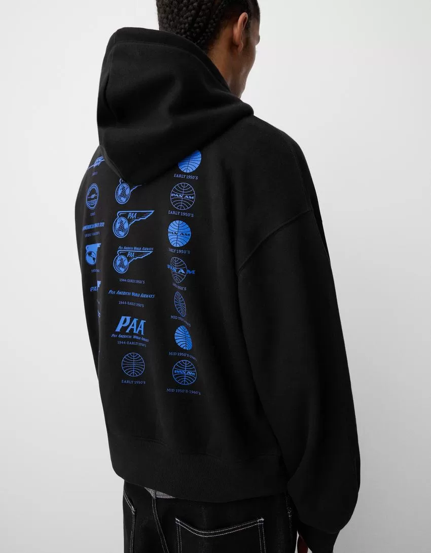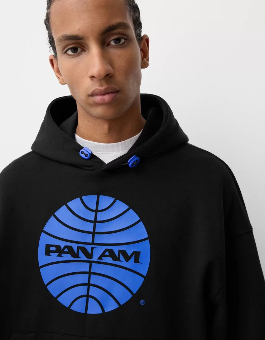 Sudadera con capucha y corte cuadrado con estampado Pan Am Black