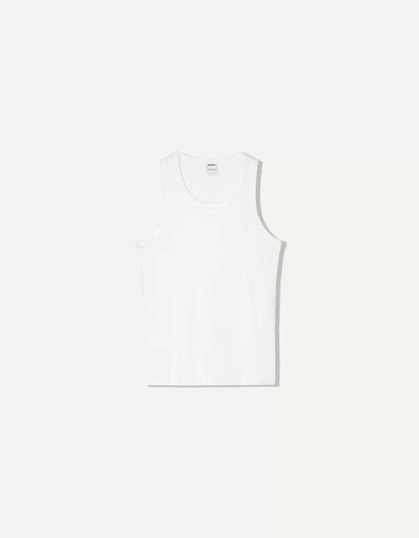 Top canalé tiras White