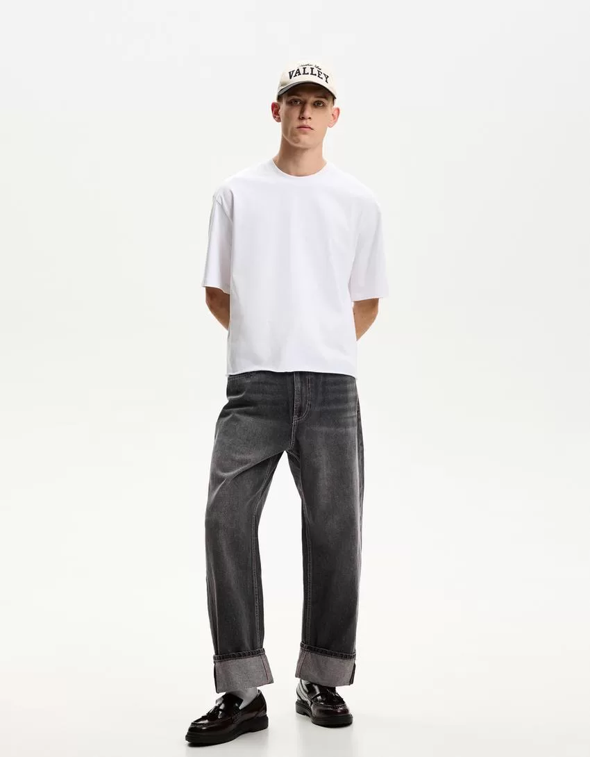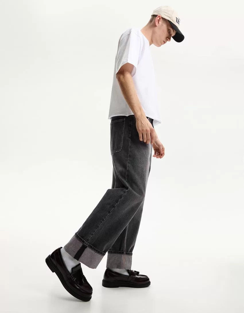 Vaqueros holgados con dobladillo vuelto Dark grey