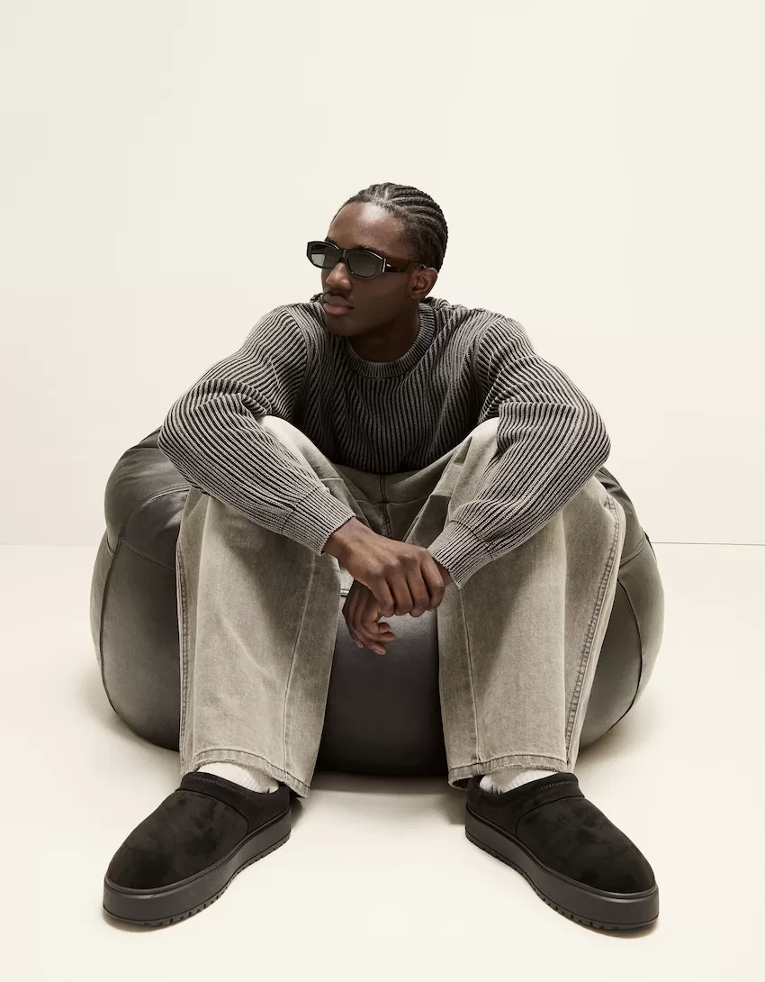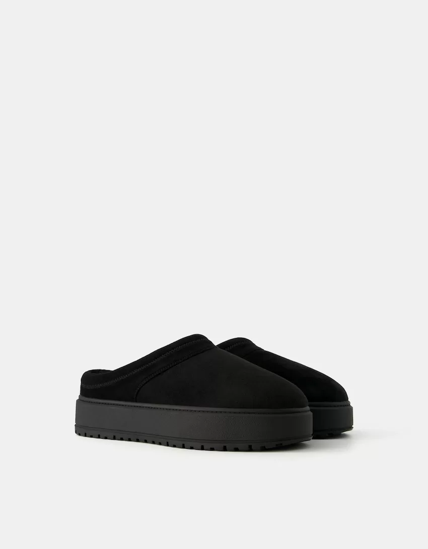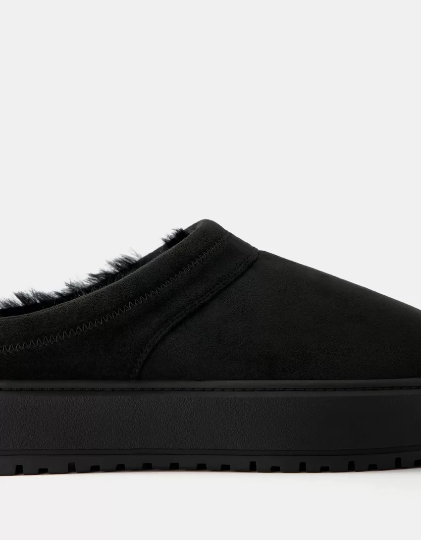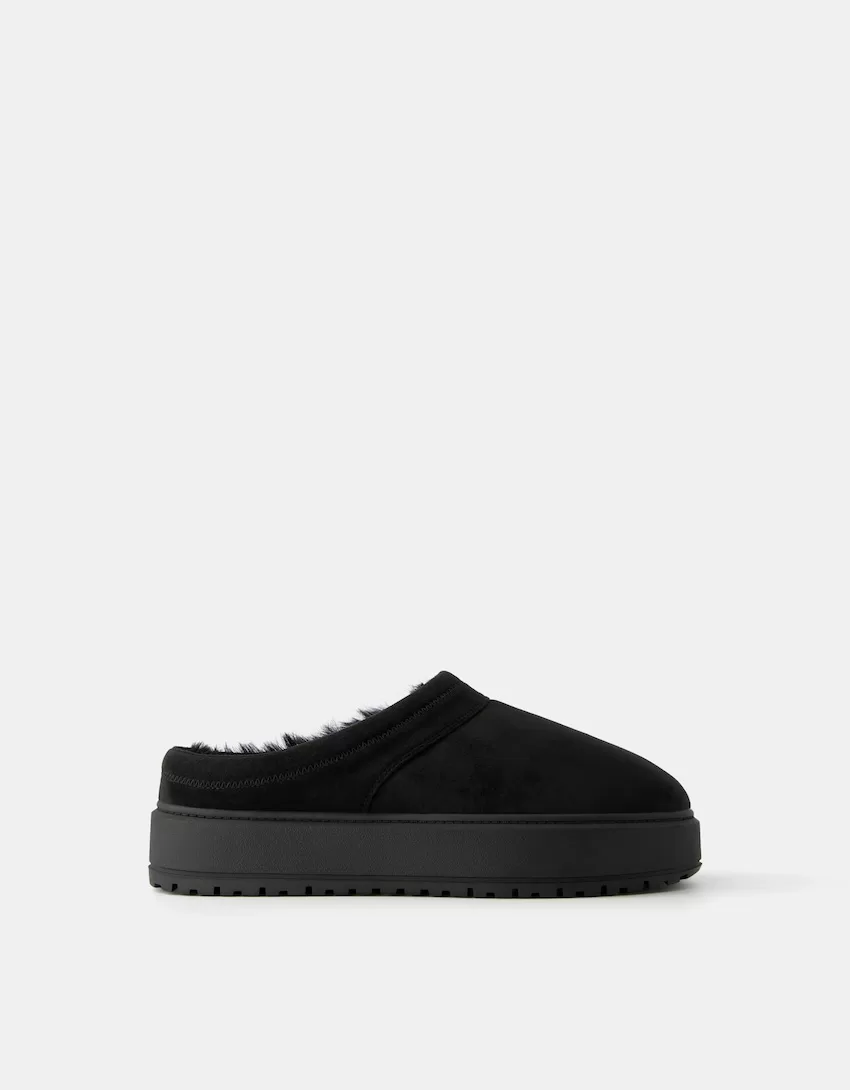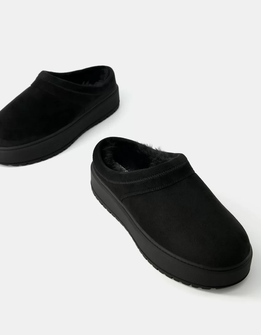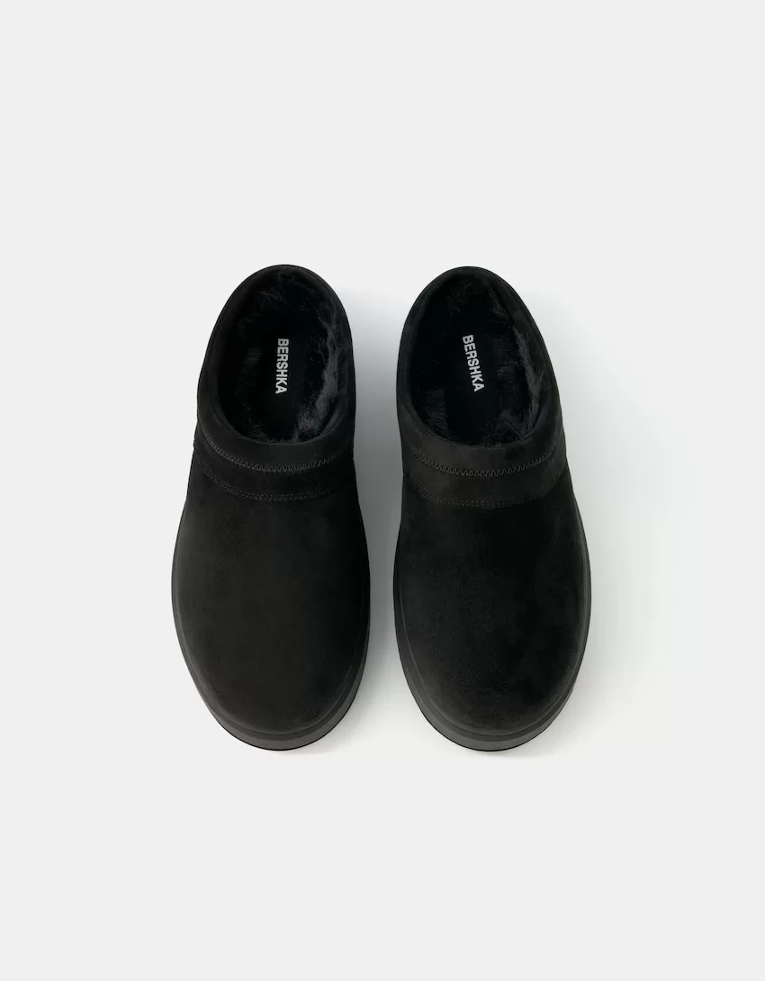 Zuecos de plataforma con forro de pelo sintético BLACK
