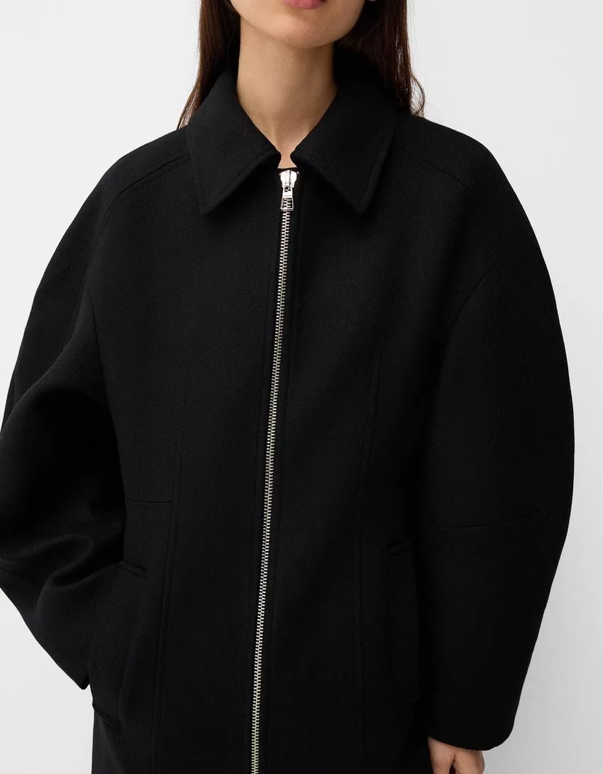Abrigo largo de lana Manteco con mangas abullonadas Black
