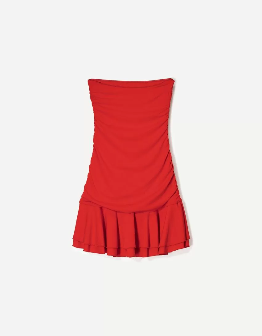 BERSHKA SERIES vestido corto drapeado con volantes Red