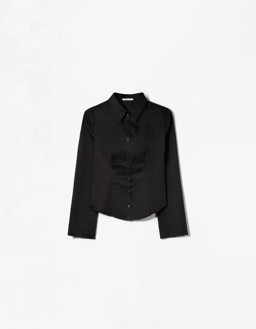 Camisa ajustada con mangas acampanadas Black