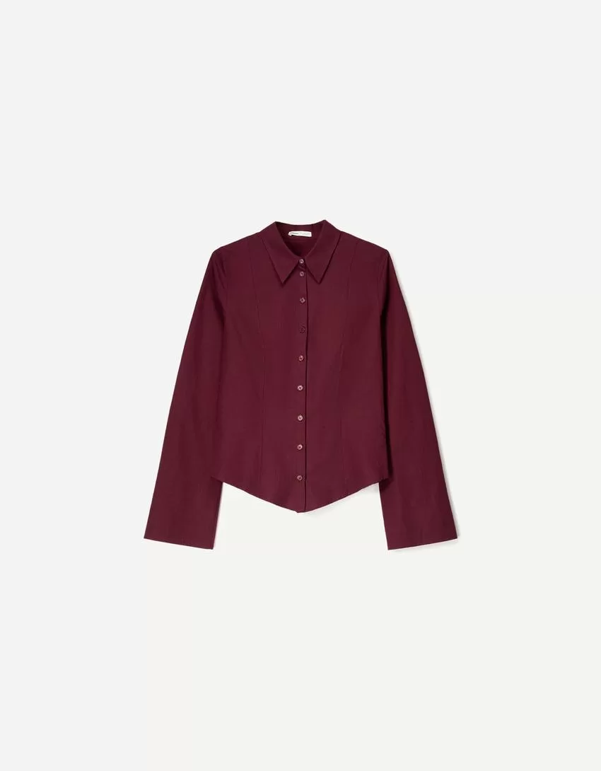 Camisa ajustada con mangas acampanadas Maroon