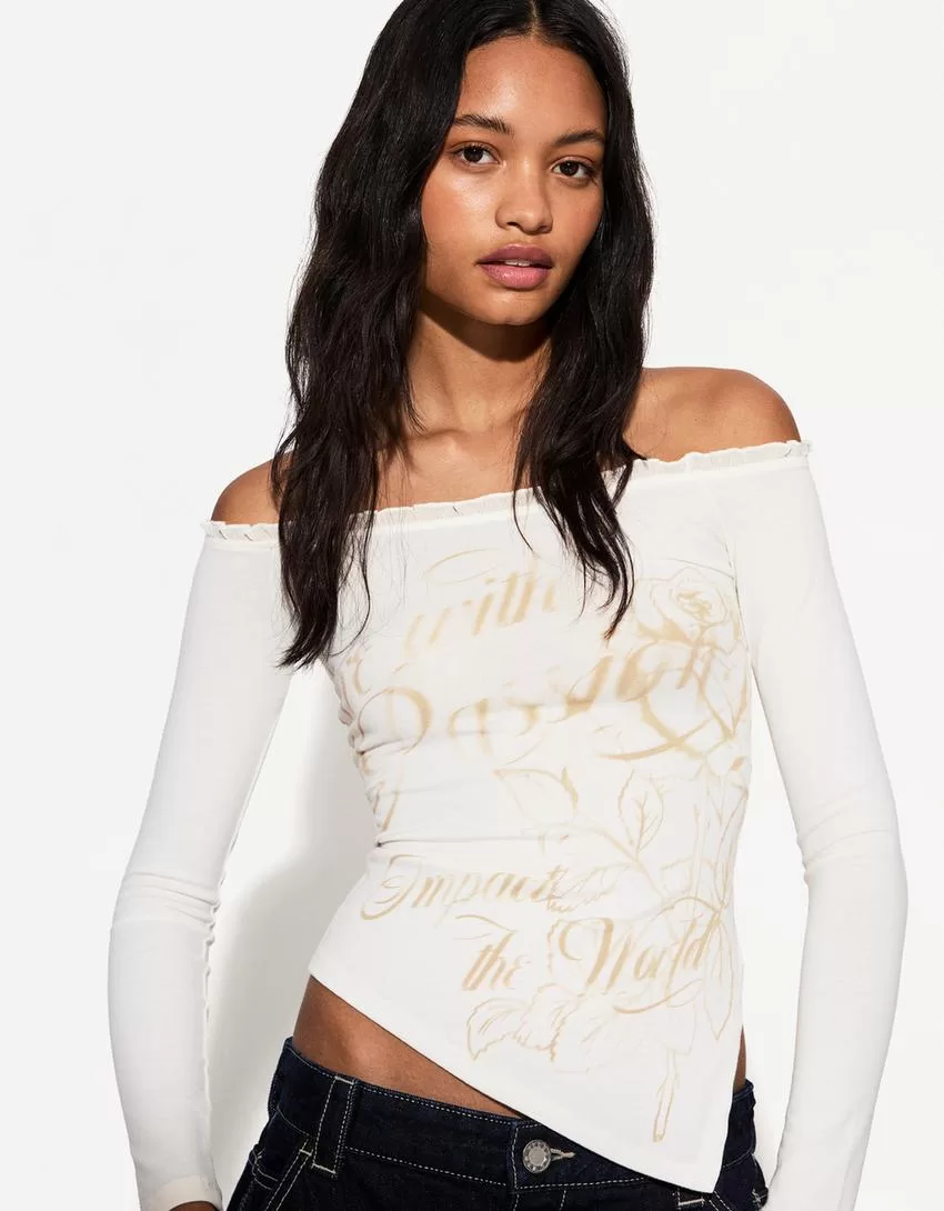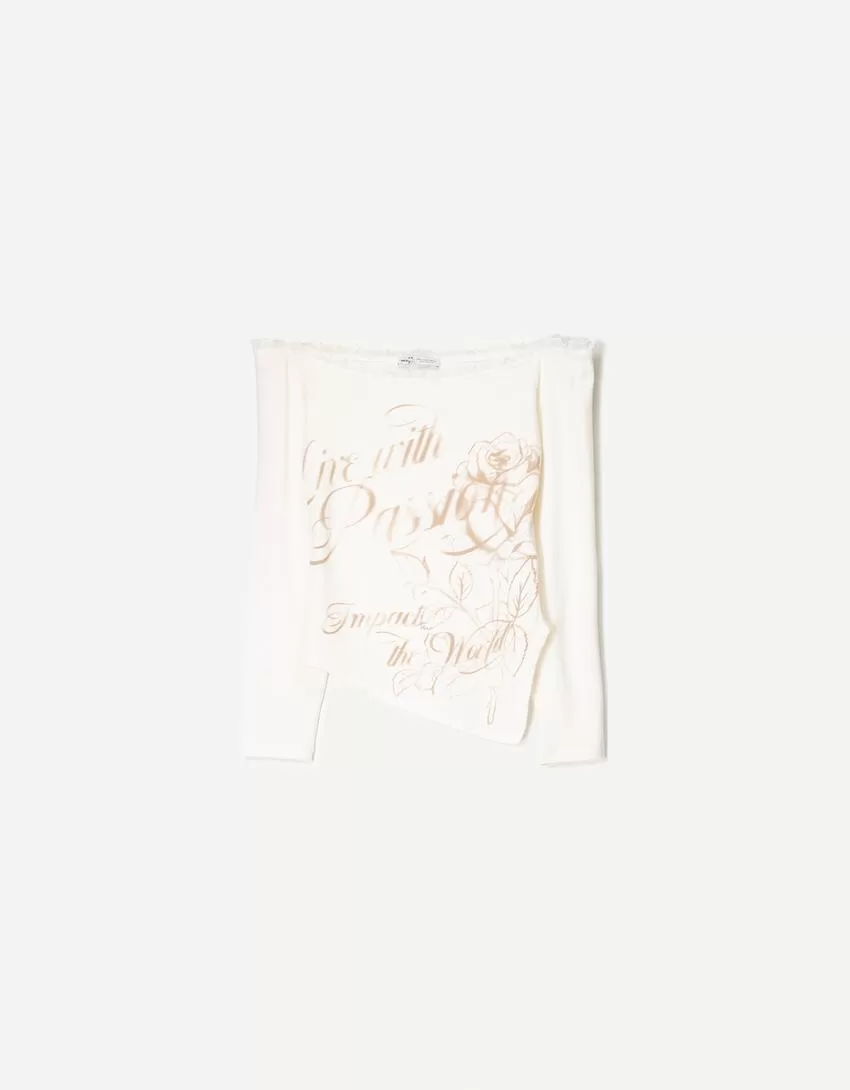 Camiseta asimétrica manga larga Off white