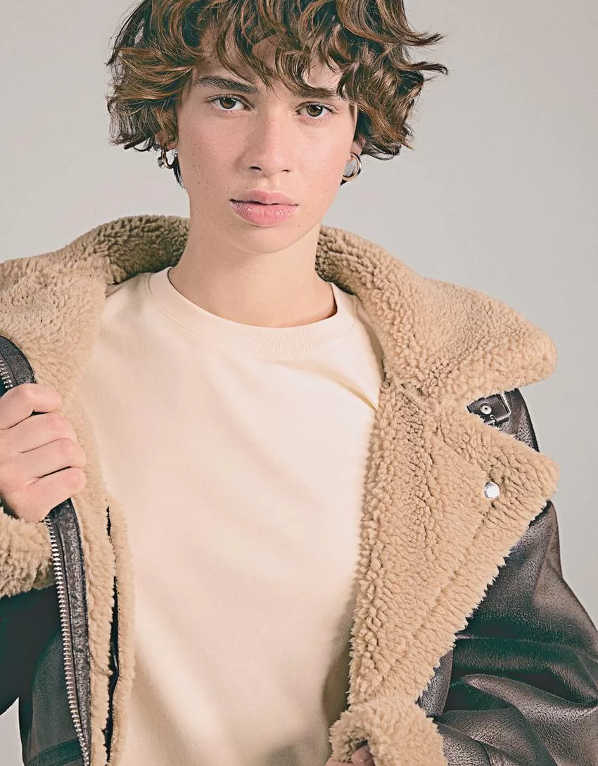 Camiseta de algodón grueso de manga corta Beige