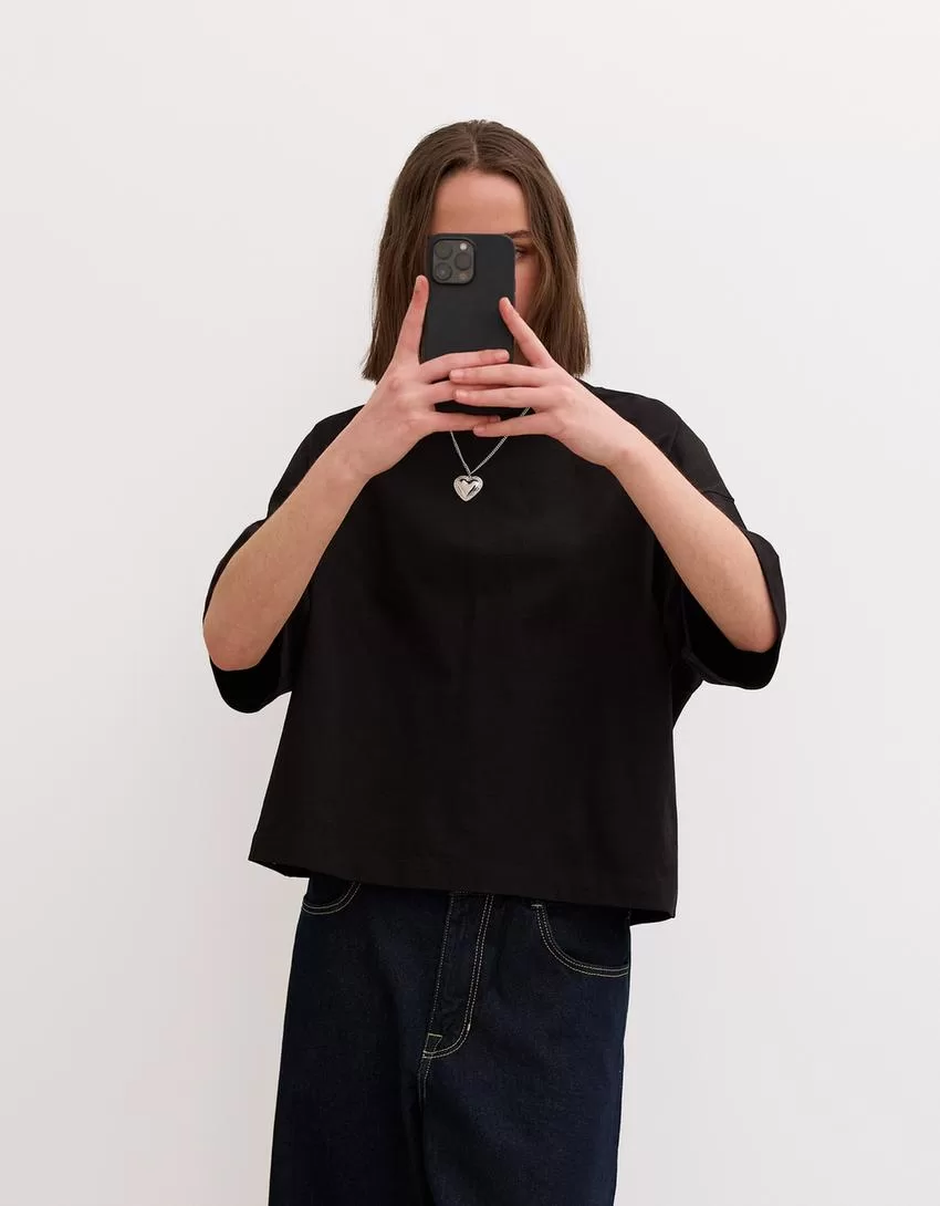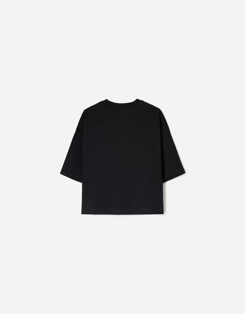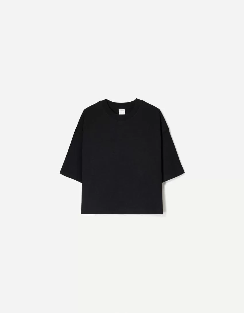 Camiseta de manga corta con corte cuadrado de algodón grueso Black