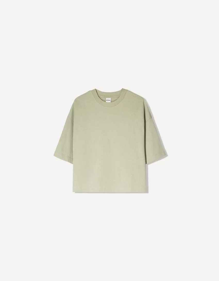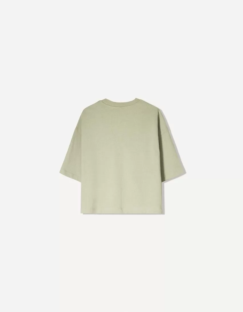 Camiseta de manga corta con corte cuadrado de algodón grueso Khaki