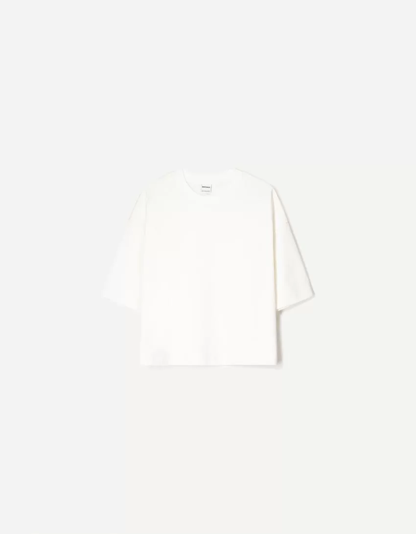 Camiseta de manga corta con corte cuadrado de algodón grueso Off white