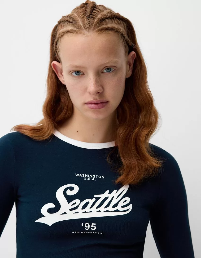 Camiseta de manga larga con estampado Navy