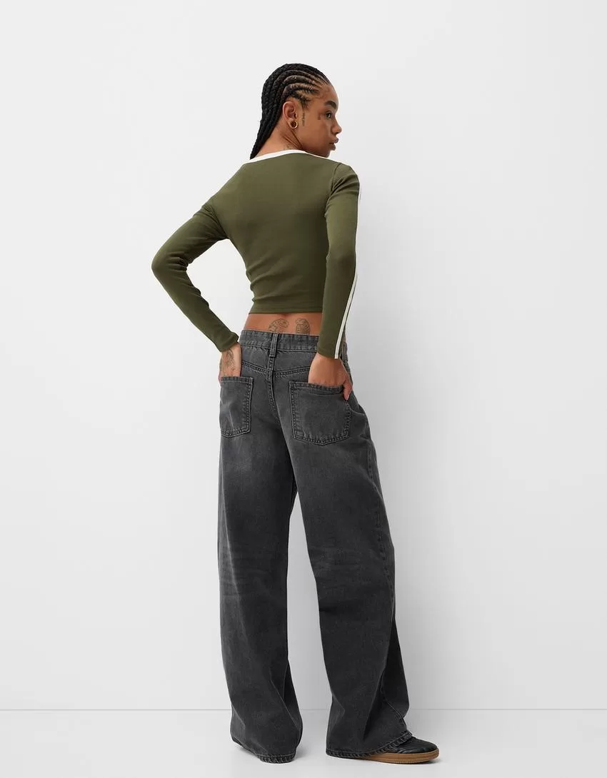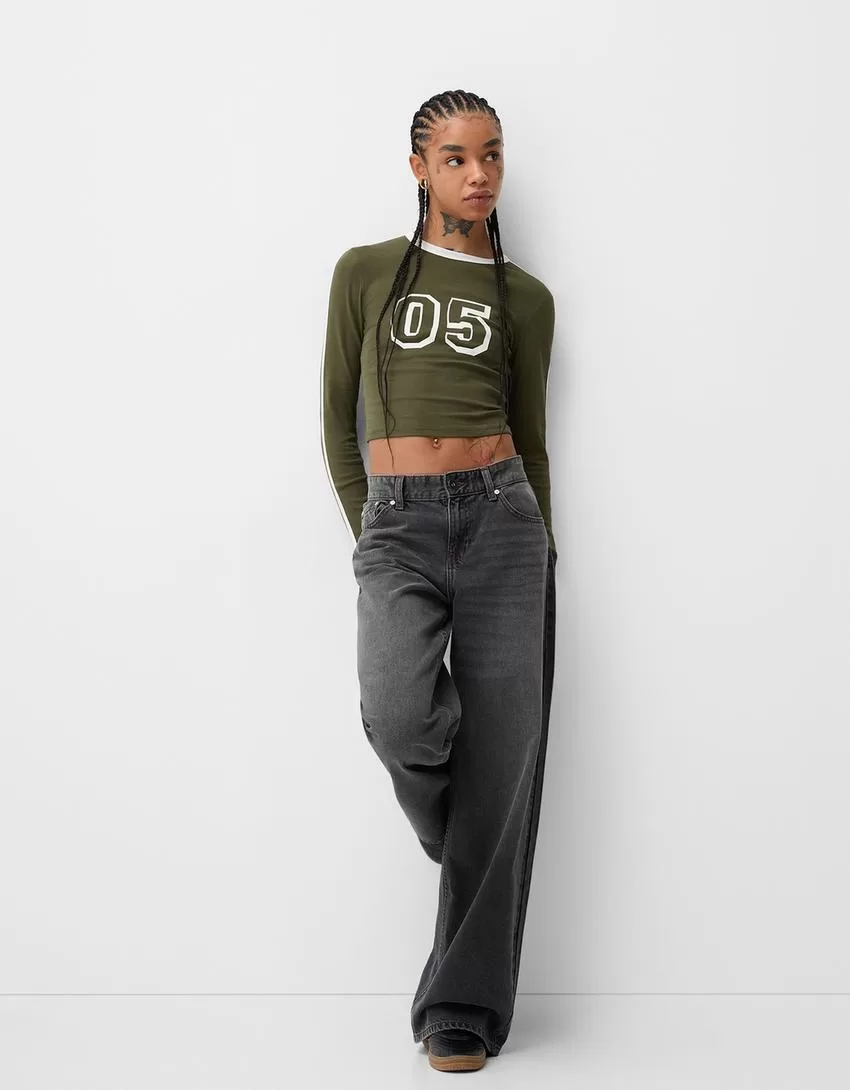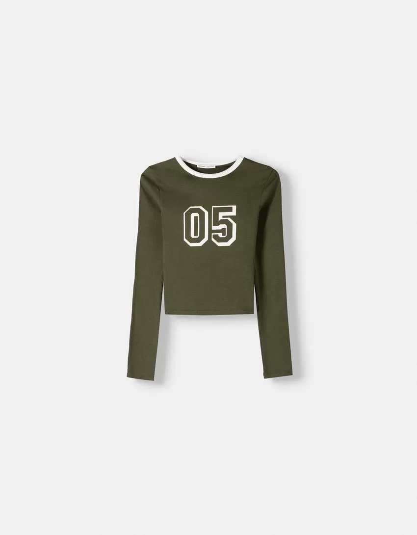Camiseta de manga larga con estampado y ribete Khaki