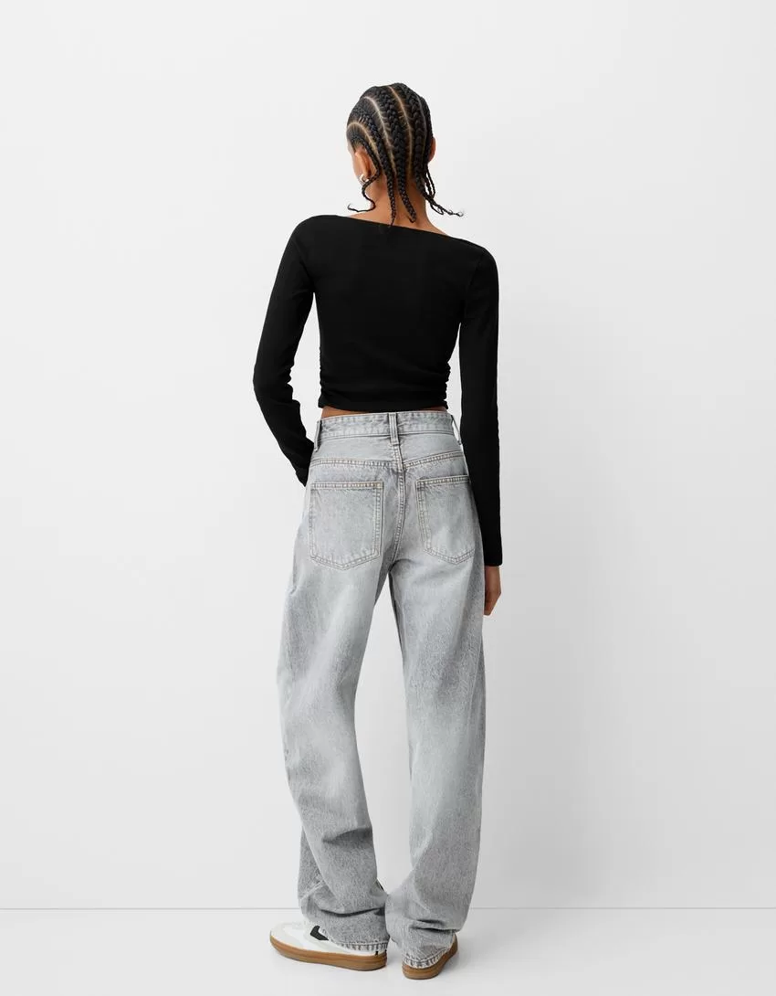 Camiseta de manga larga con laterales fruncidos Black