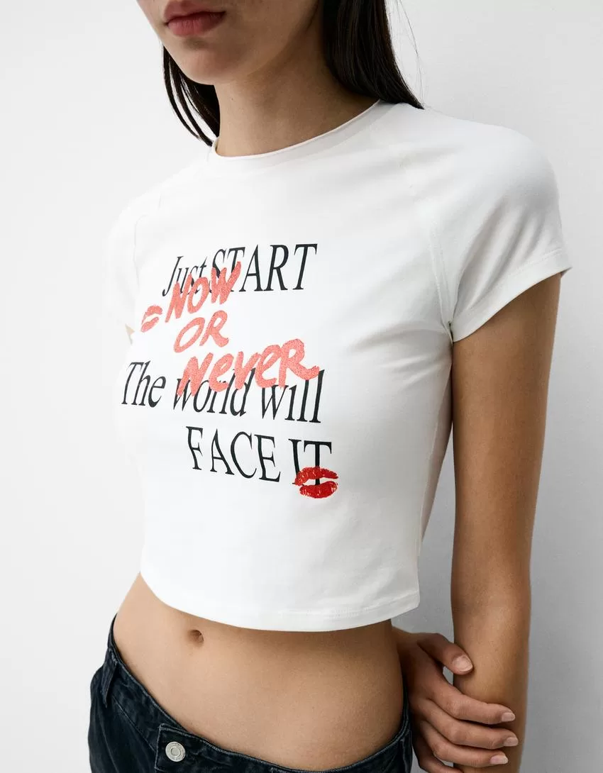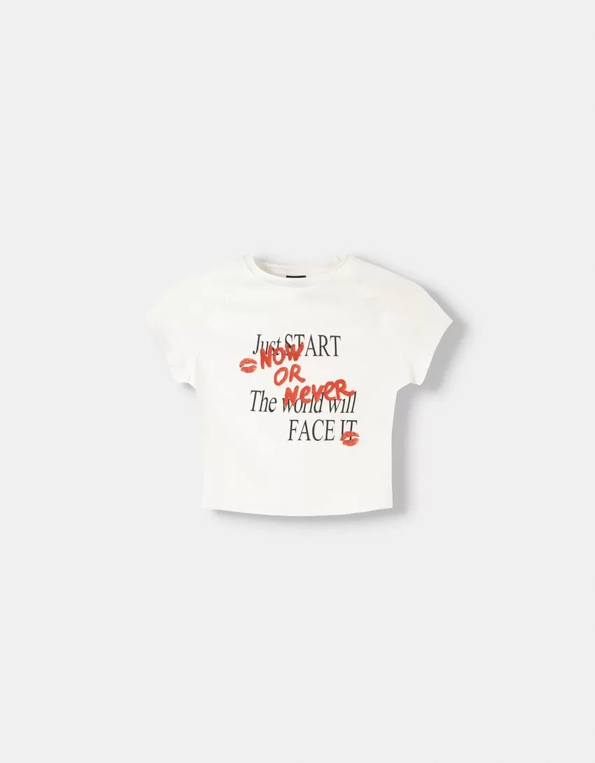 Camiseta estampada con manga corta raglán Cream