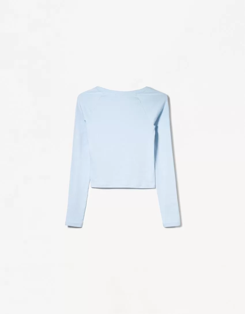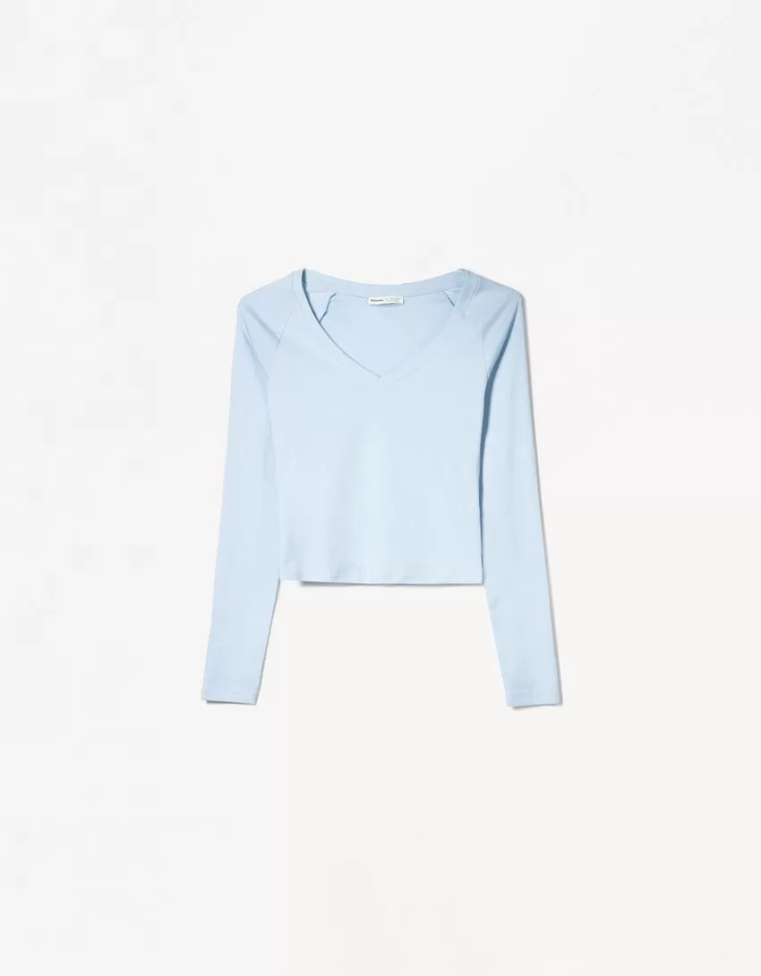Camiseta manga larga cuello pico Light blue