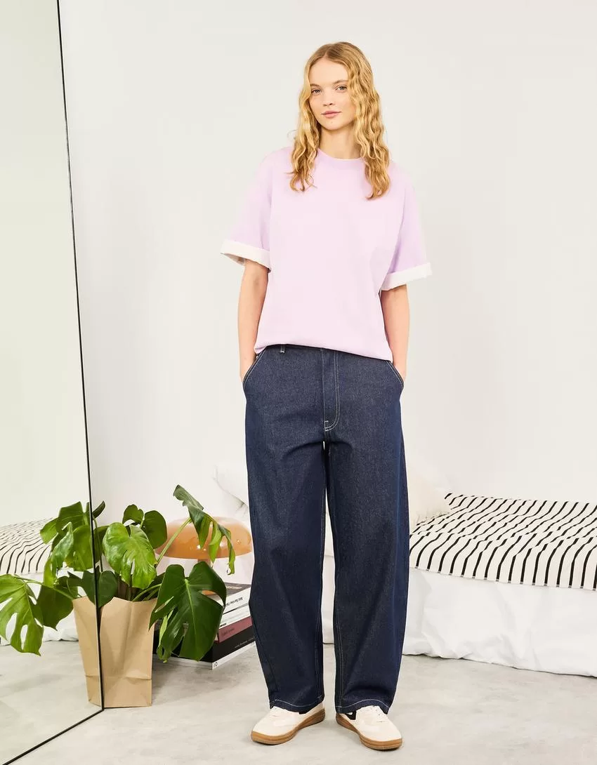 Camiseta oversize de algodón pesado de manga corta Violet
