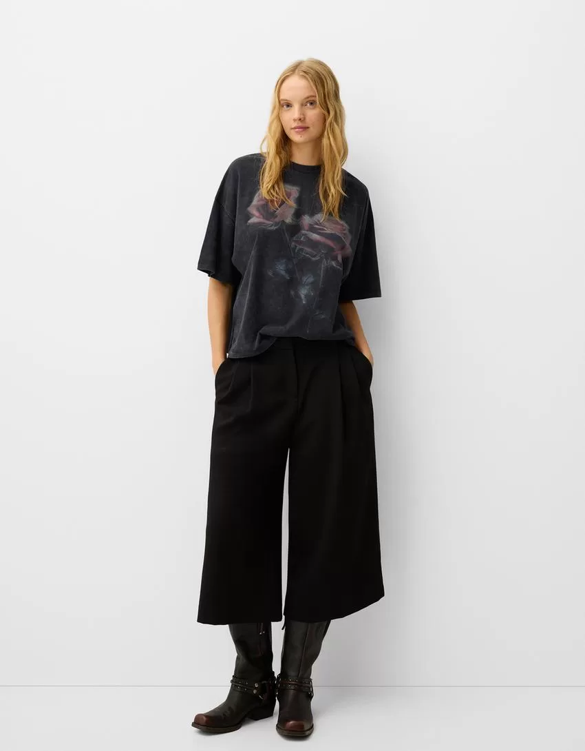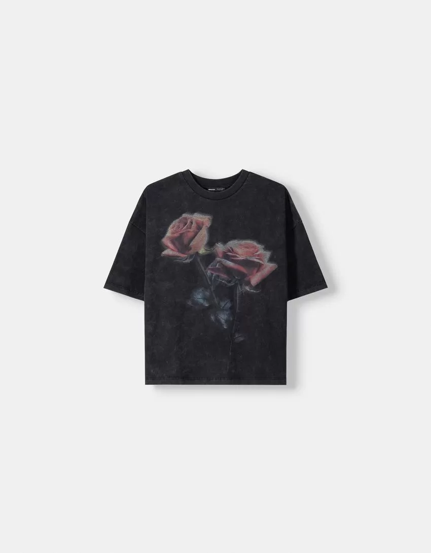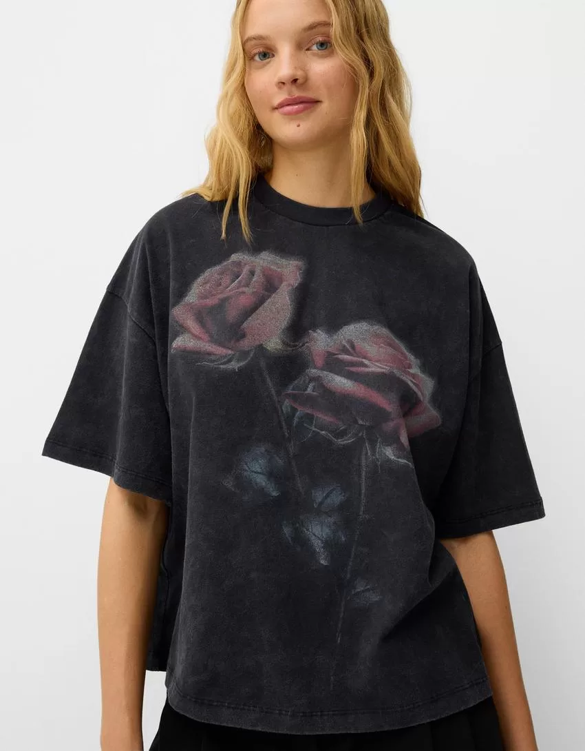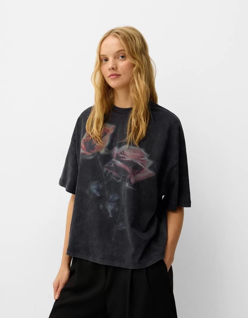 Camiseta oversize estampada de manga corta Grey