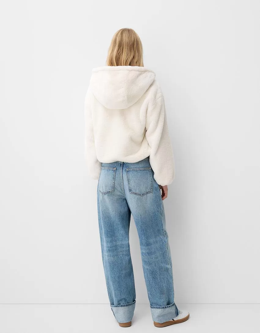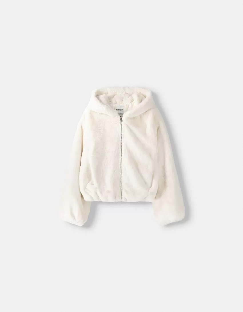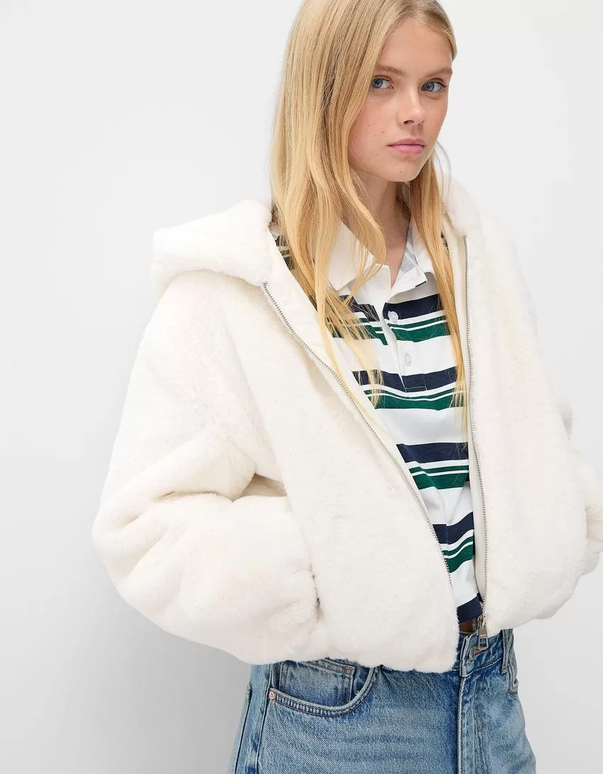 Chaqueta acolchada con capucha de pelo sintético Off white