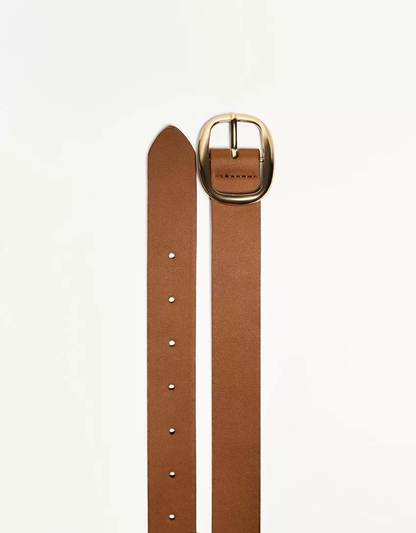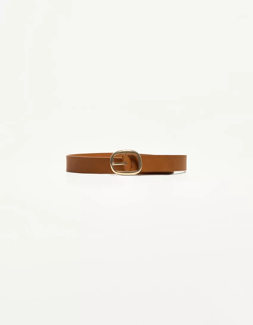 Cinturón fino de piel sintética Camel