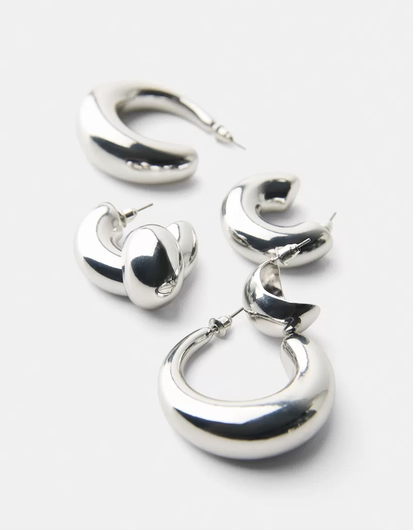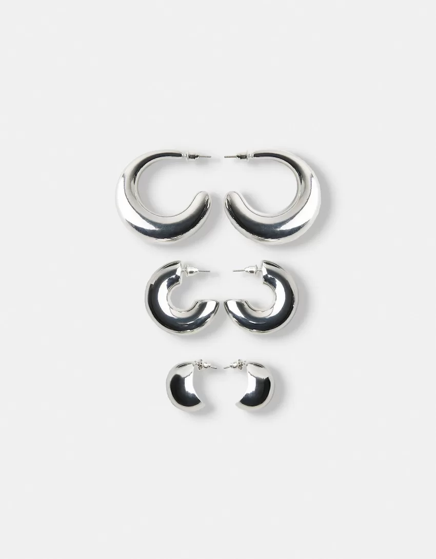 Pack de 3 pendientes de aro gruesos Silver