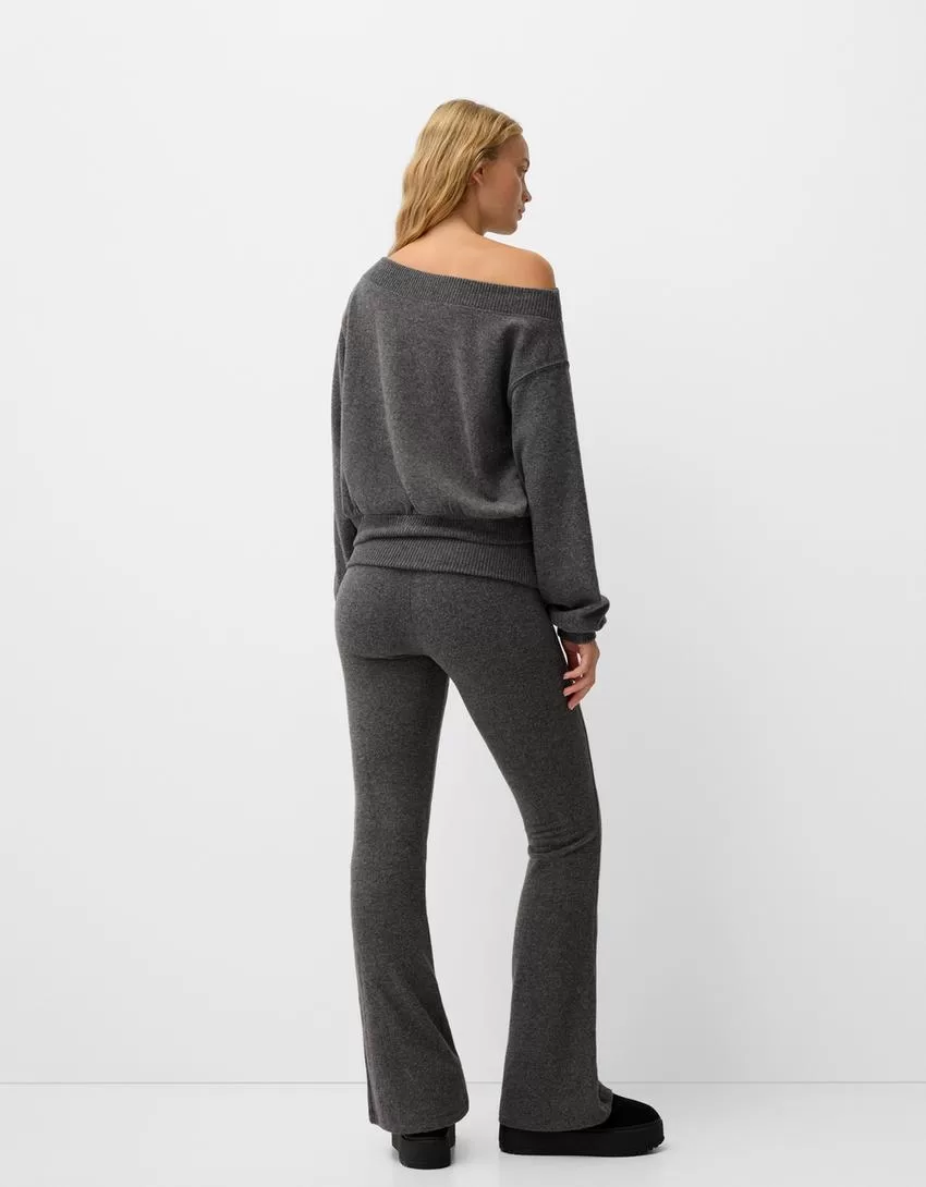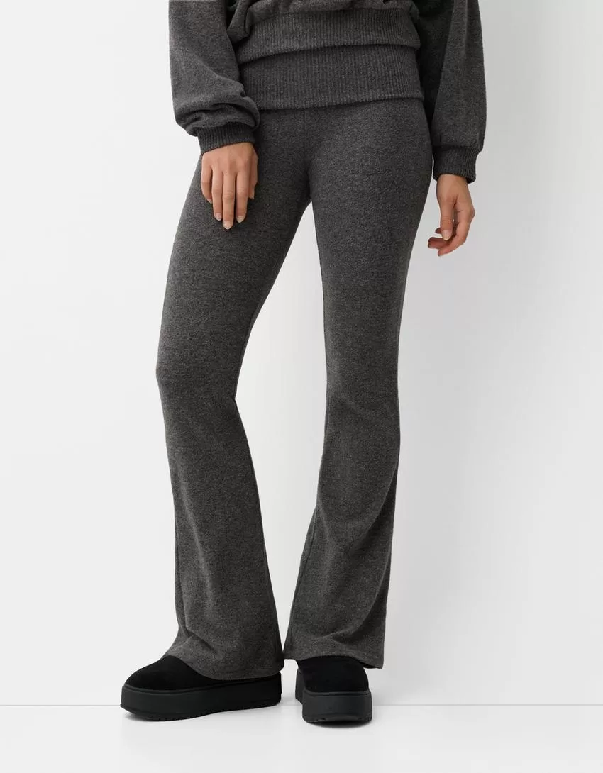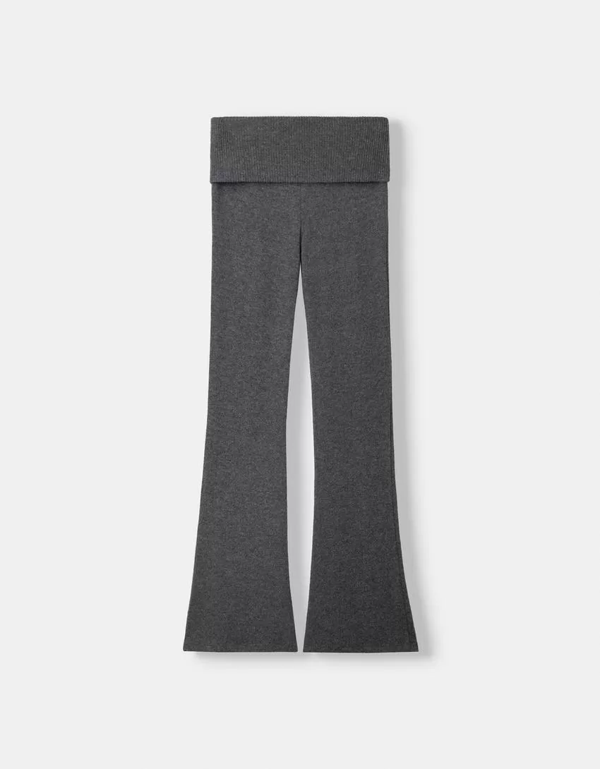 Pantalón acampanado de tacto suave con cintura doblada Dark grey