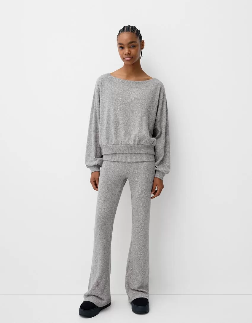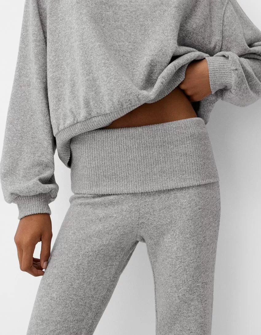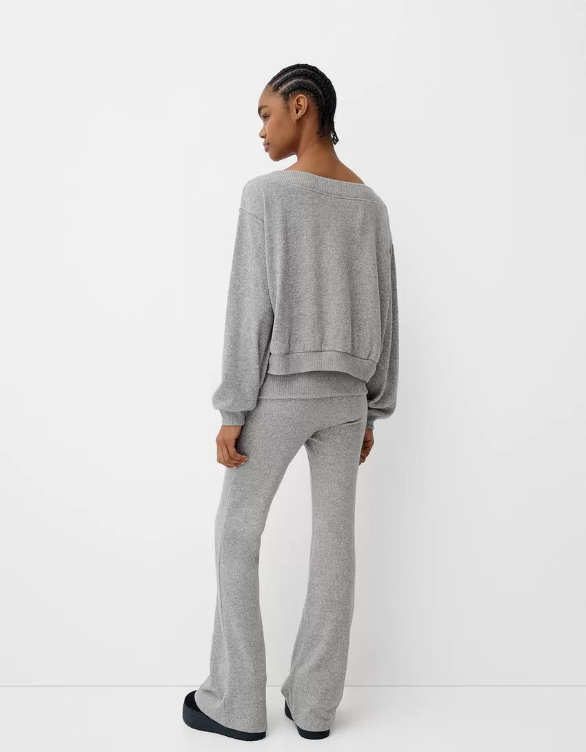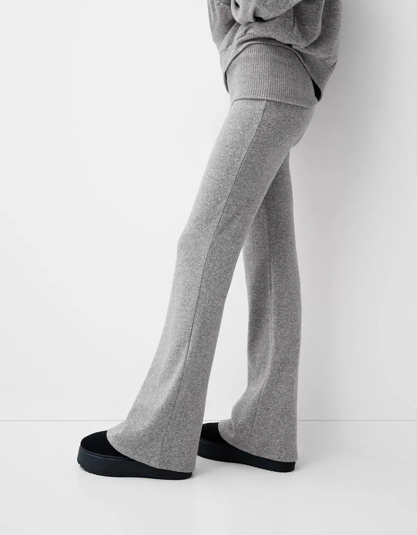 Pantalón acampanado de tacto suave con cintura doblada Grey