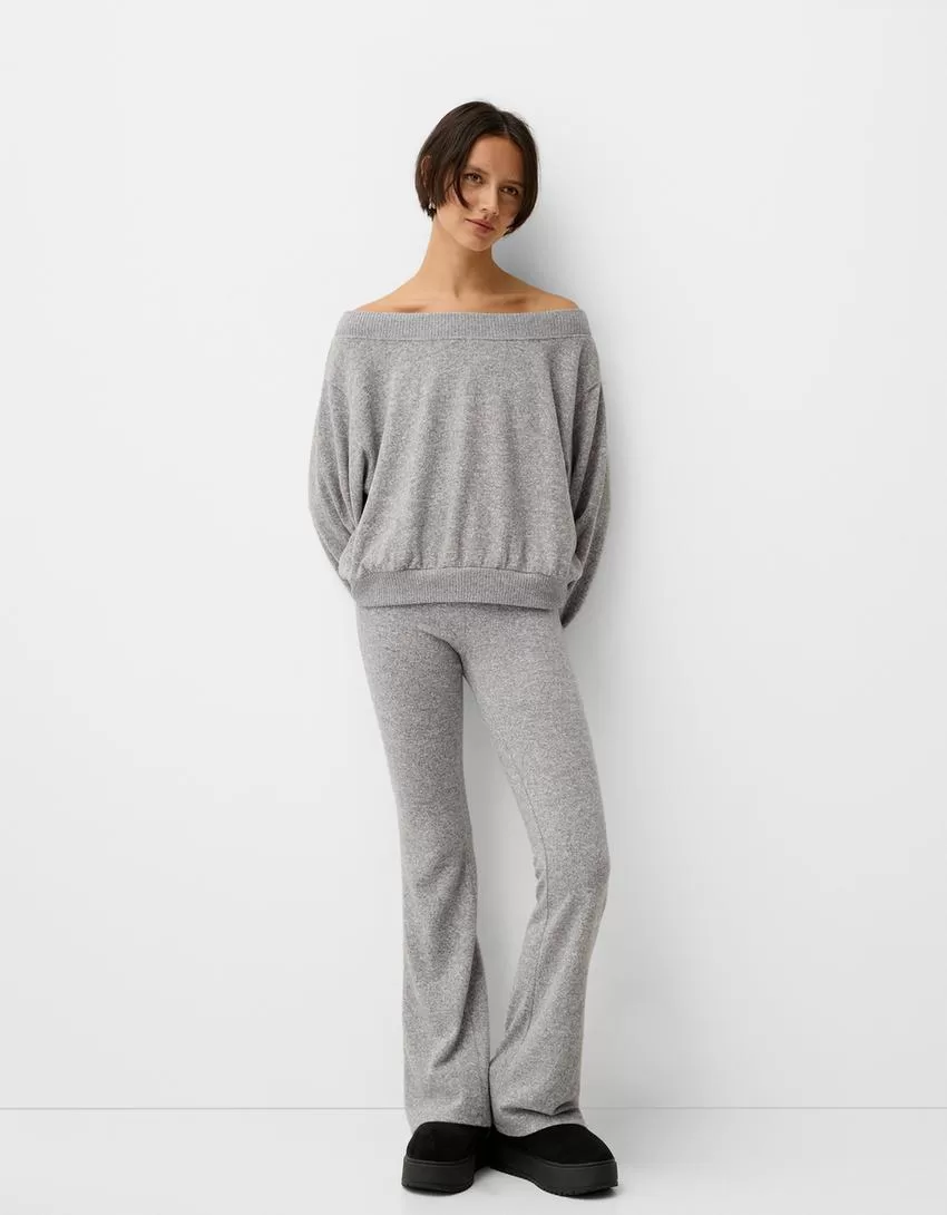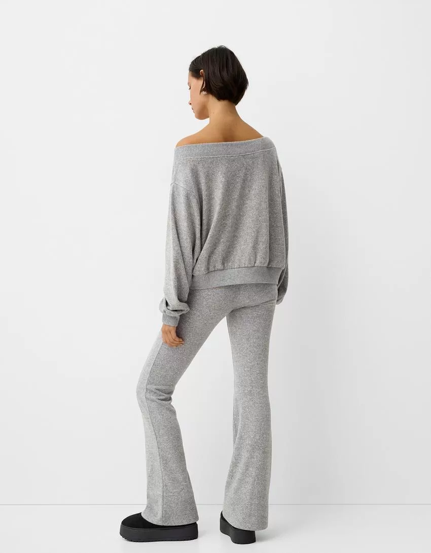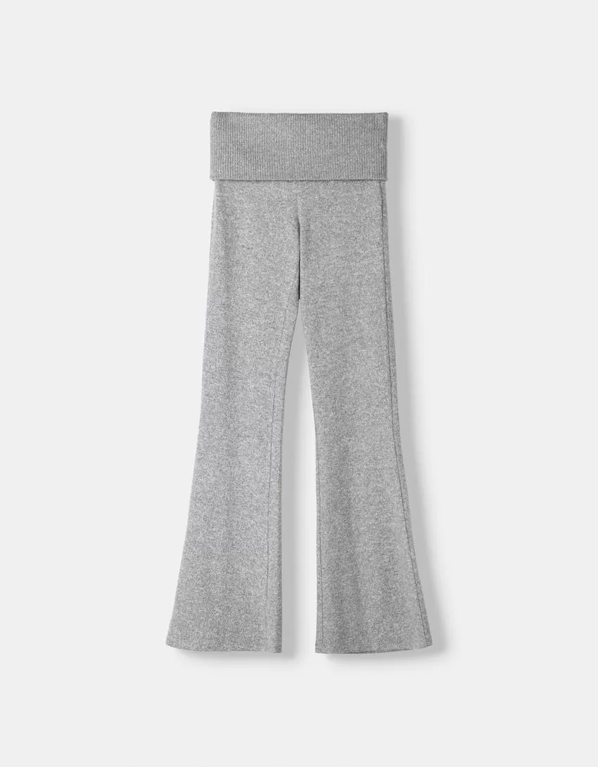 Pantalón acampanado de tacto suave con cintura doblada Grey