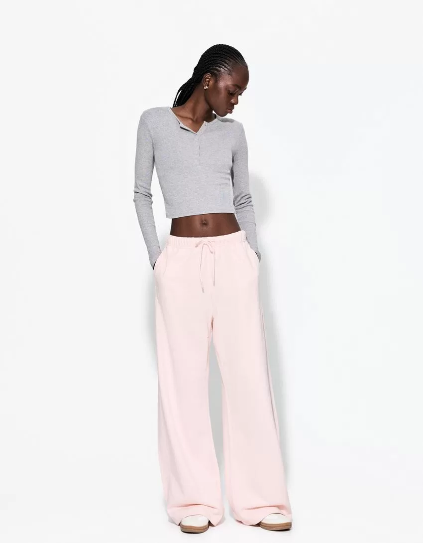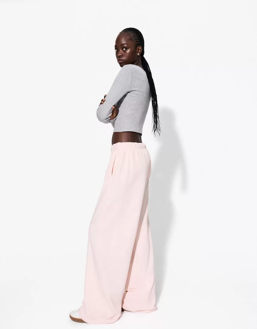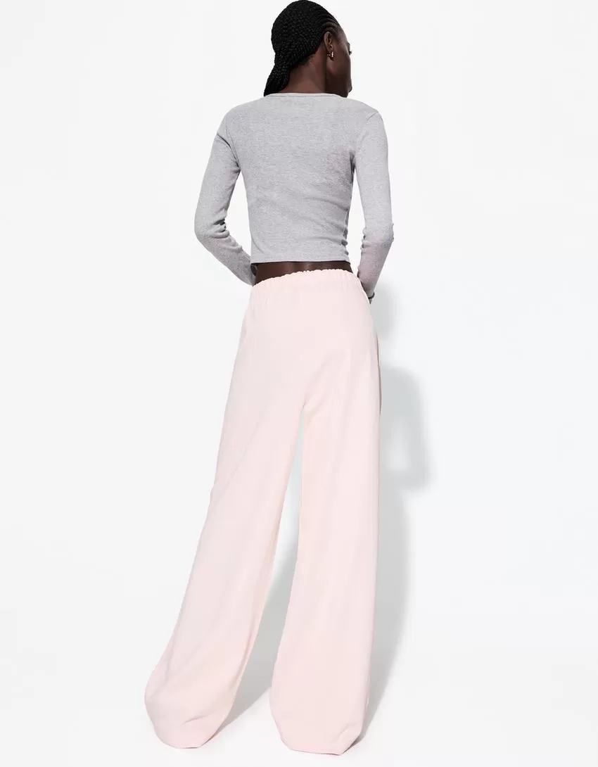 Pantalón de felpa con costuras laterales. Pink