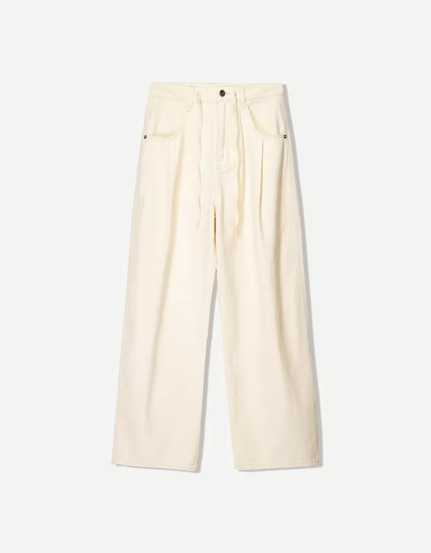 Pantalón fluido con pinzas Beige