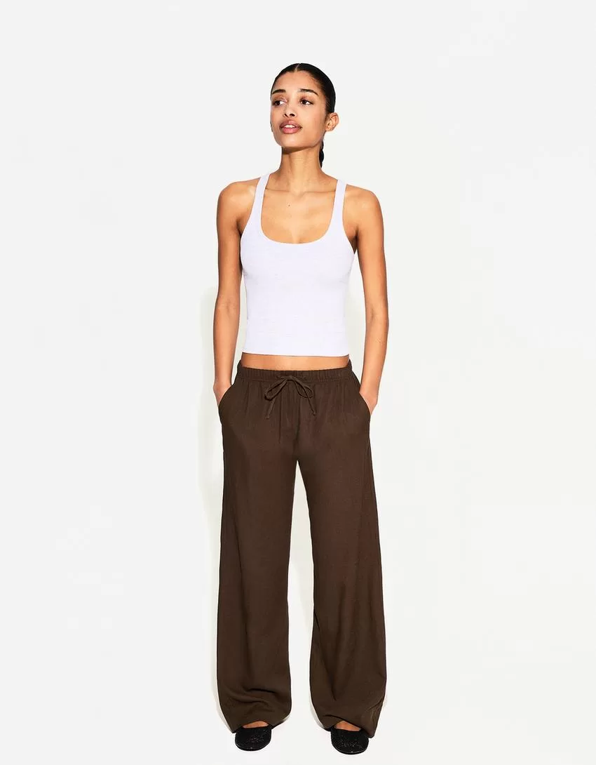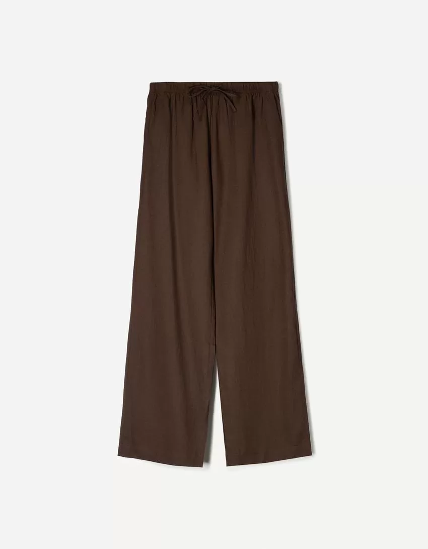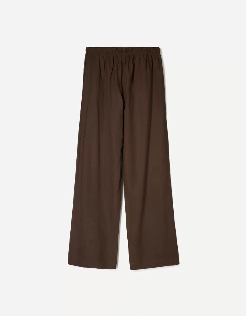 Pantalón mezcla de lino con cinturilla elástica Brown