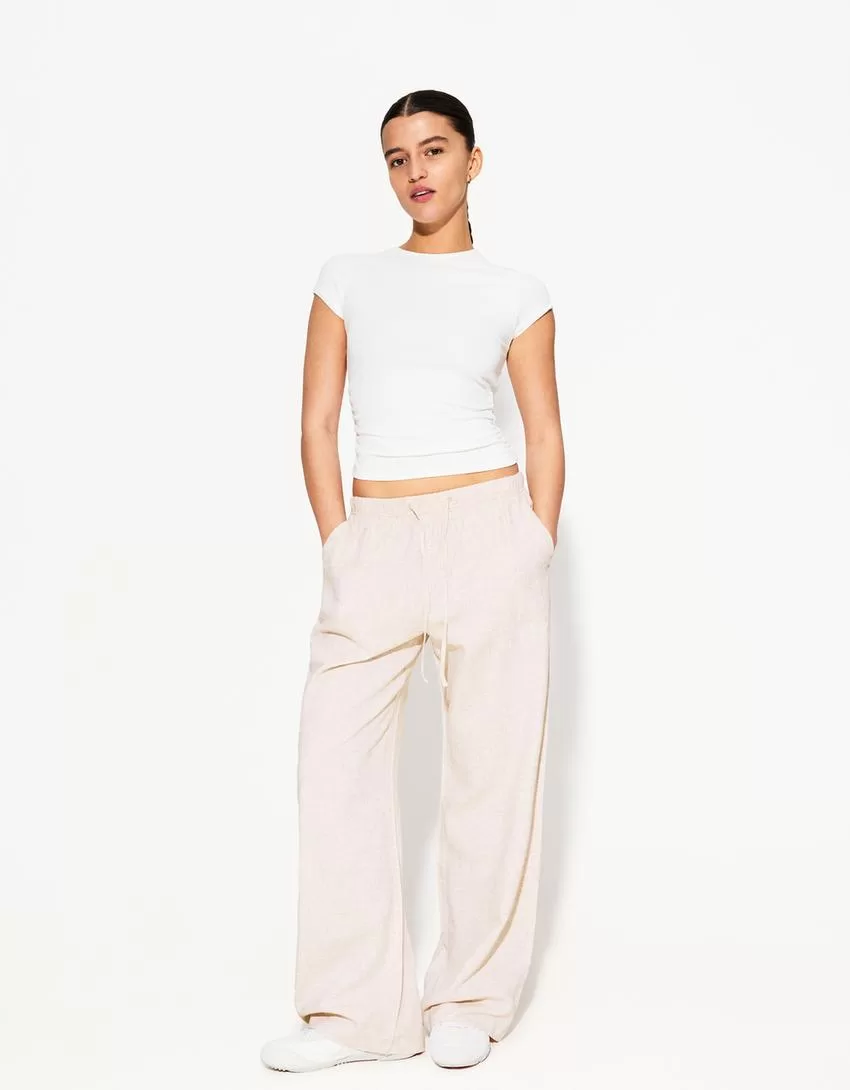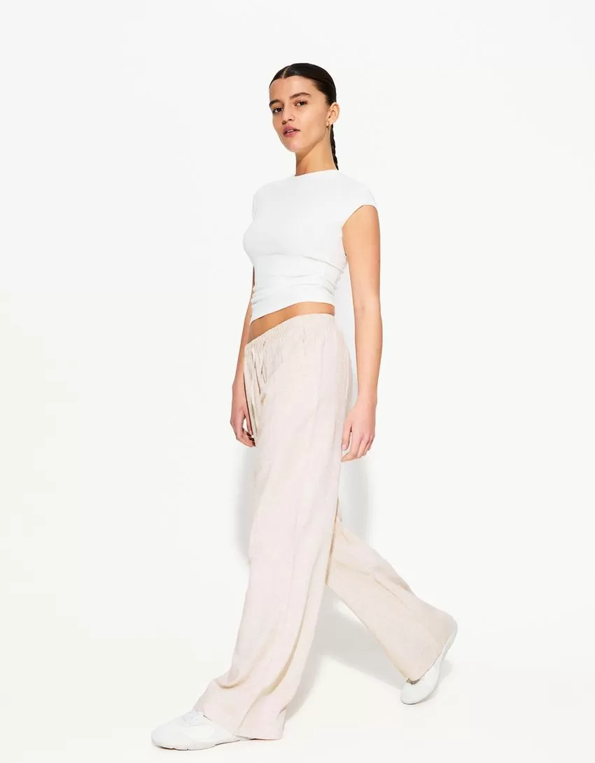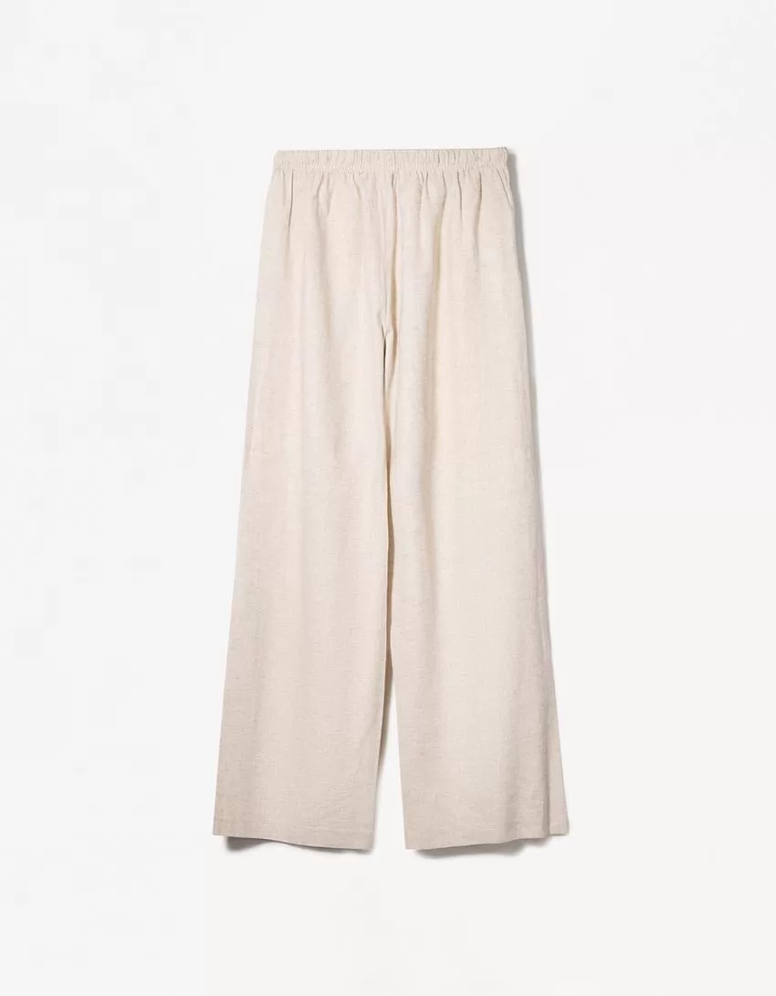 Pantalón mezcla de lino con cinturilla elástica Cream