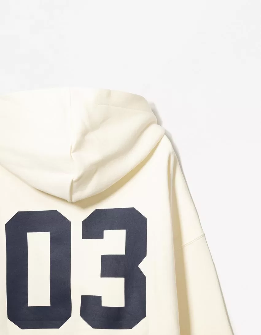 Sudadera con capucha estampada y cremallera Mustard