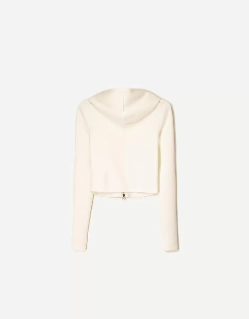 Sudadera modal con capucha y cremallera Cream