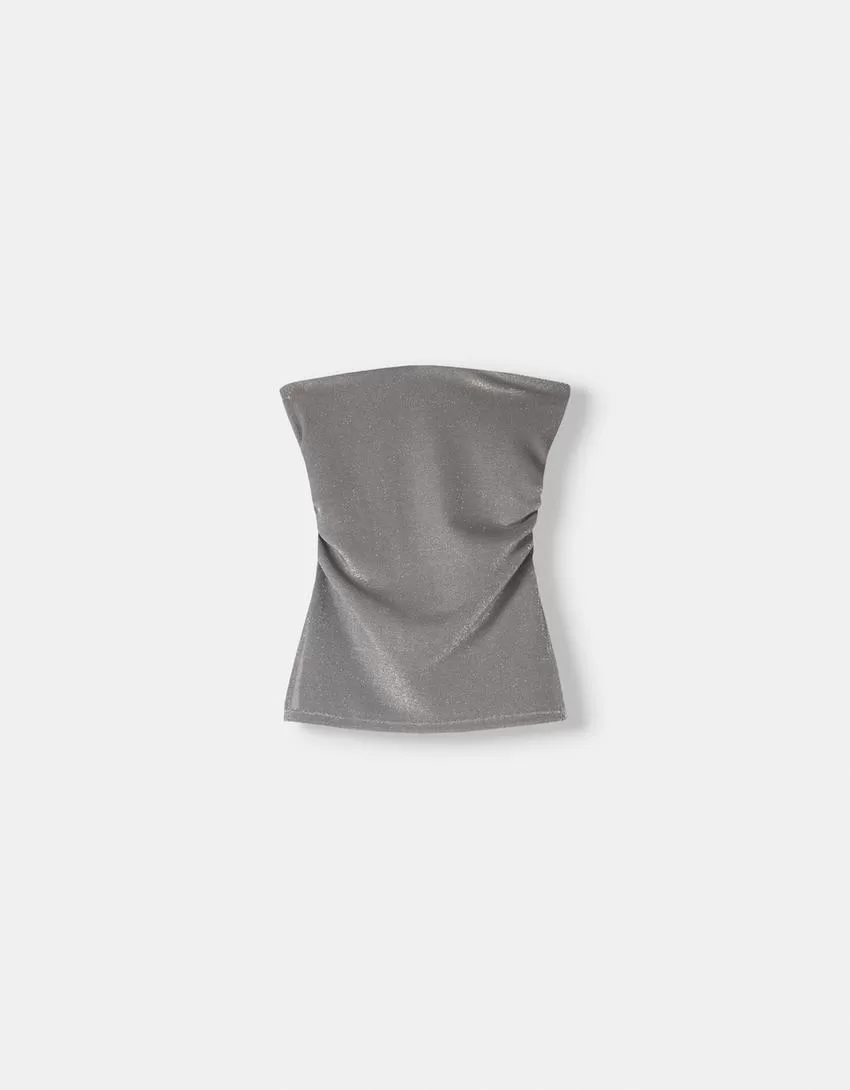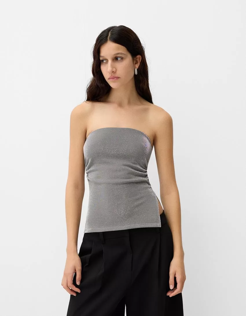 Top bandeau de hilo metalizado con aberturas laterales Silver