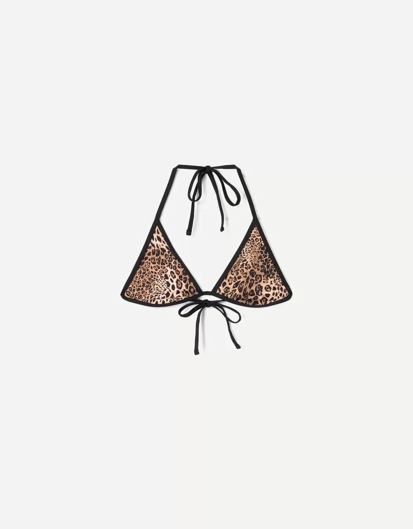 Top de bikini reversible con estampado animal Black