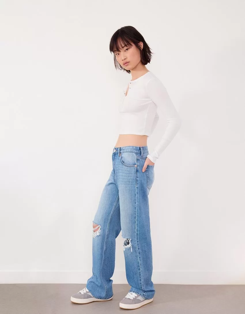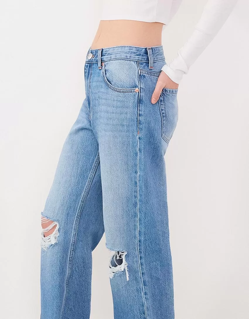 Vaqueros anchos estilo años 90 con rotos Light blue