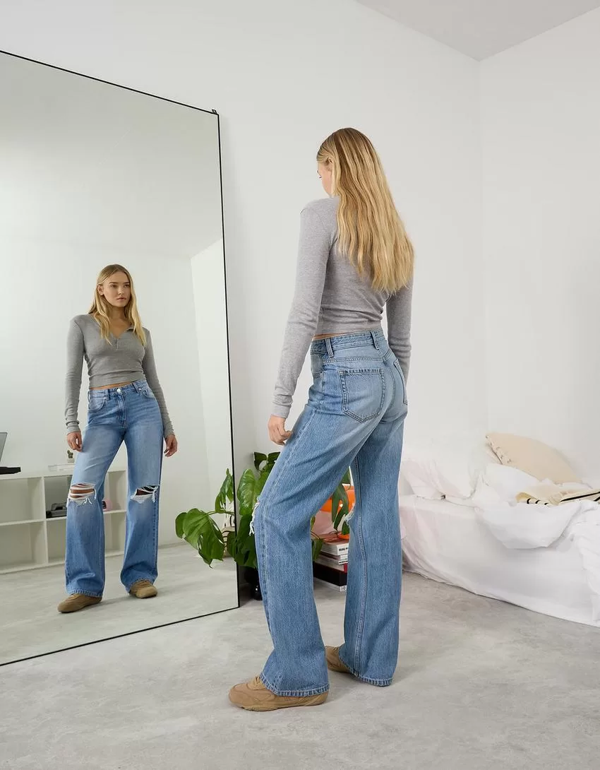 Vaqueros anchos estilo años 90 con rotos Light blue