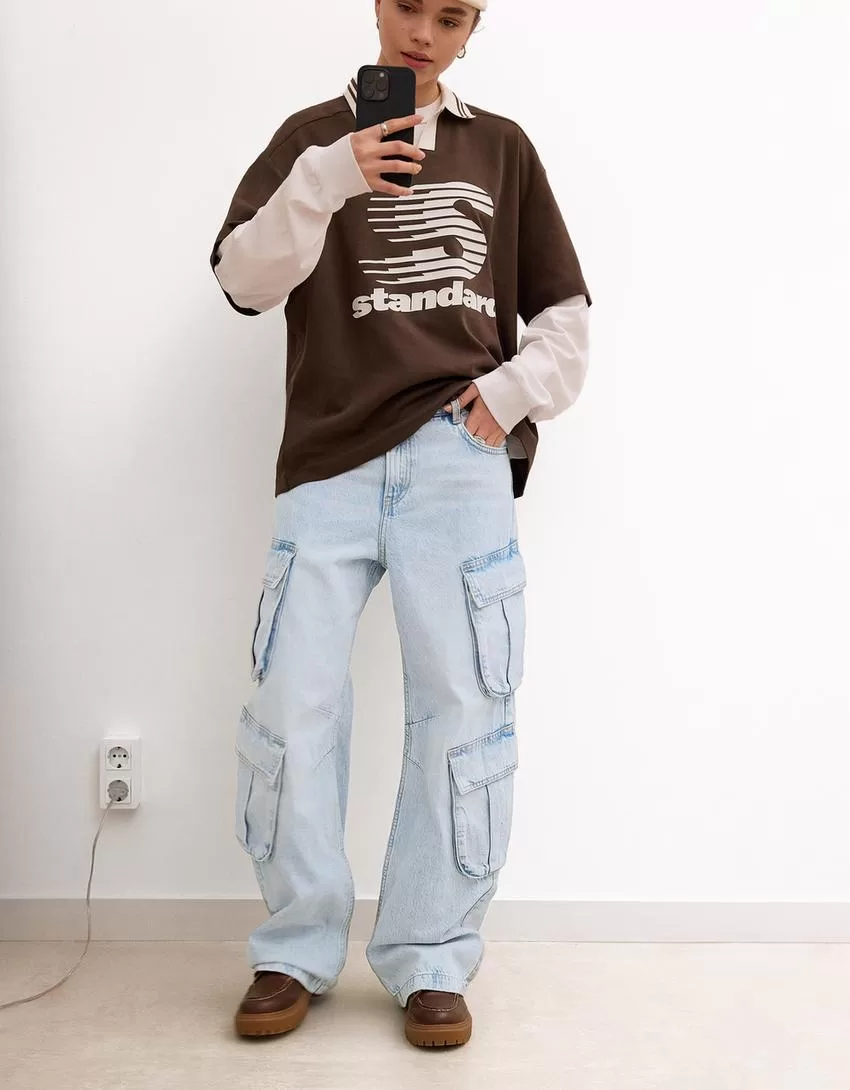 Vaqueros cargo multibolsillos Light blue