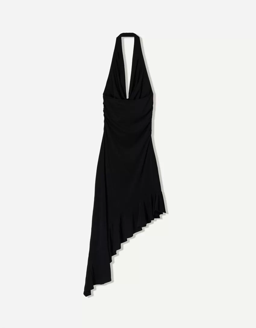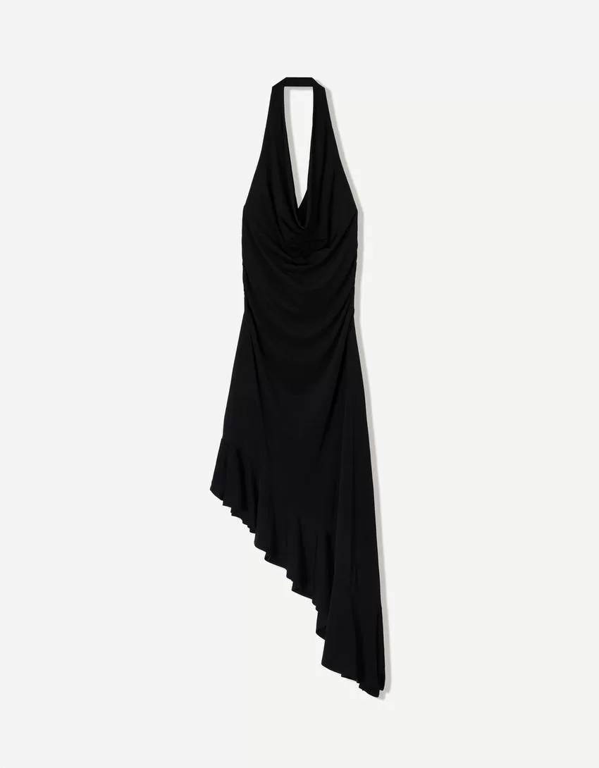 Vestido midi con bajo asimétrico de BERSHKA SERIES Black